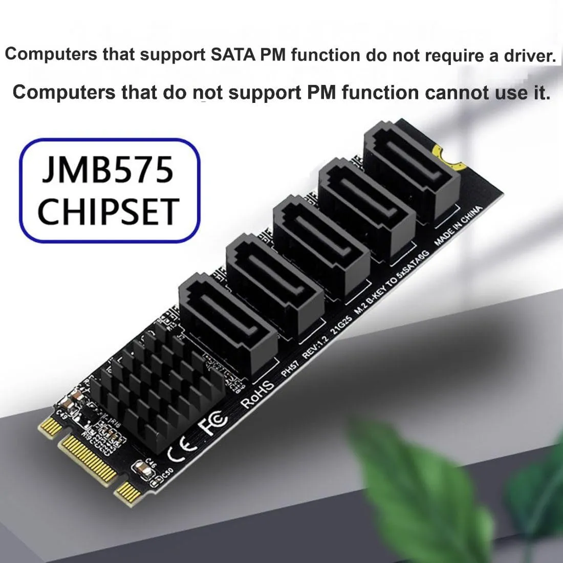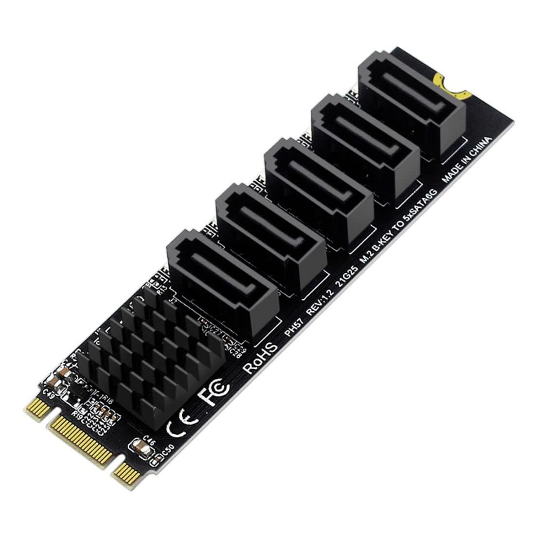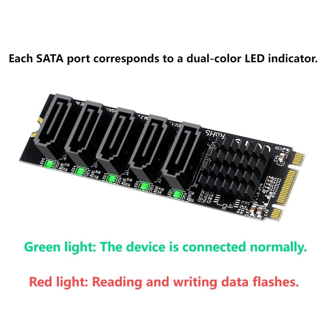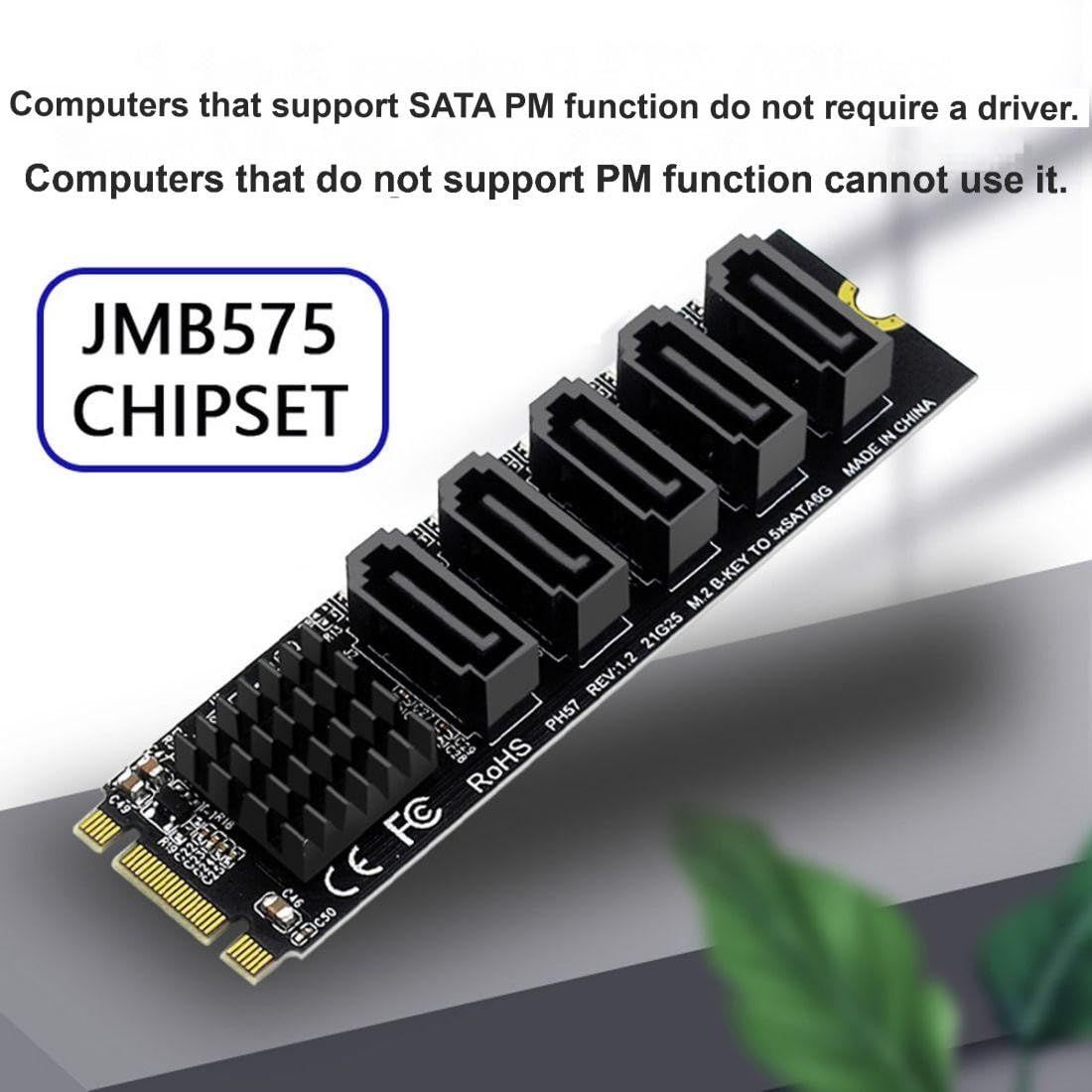新品 ChenYang 5ポート M.2 - SATAアダプター、B+Mキー NGFF 1~5 SATA 3.0ポート拡張カード JMB575チップ/LEDインジケーター付き