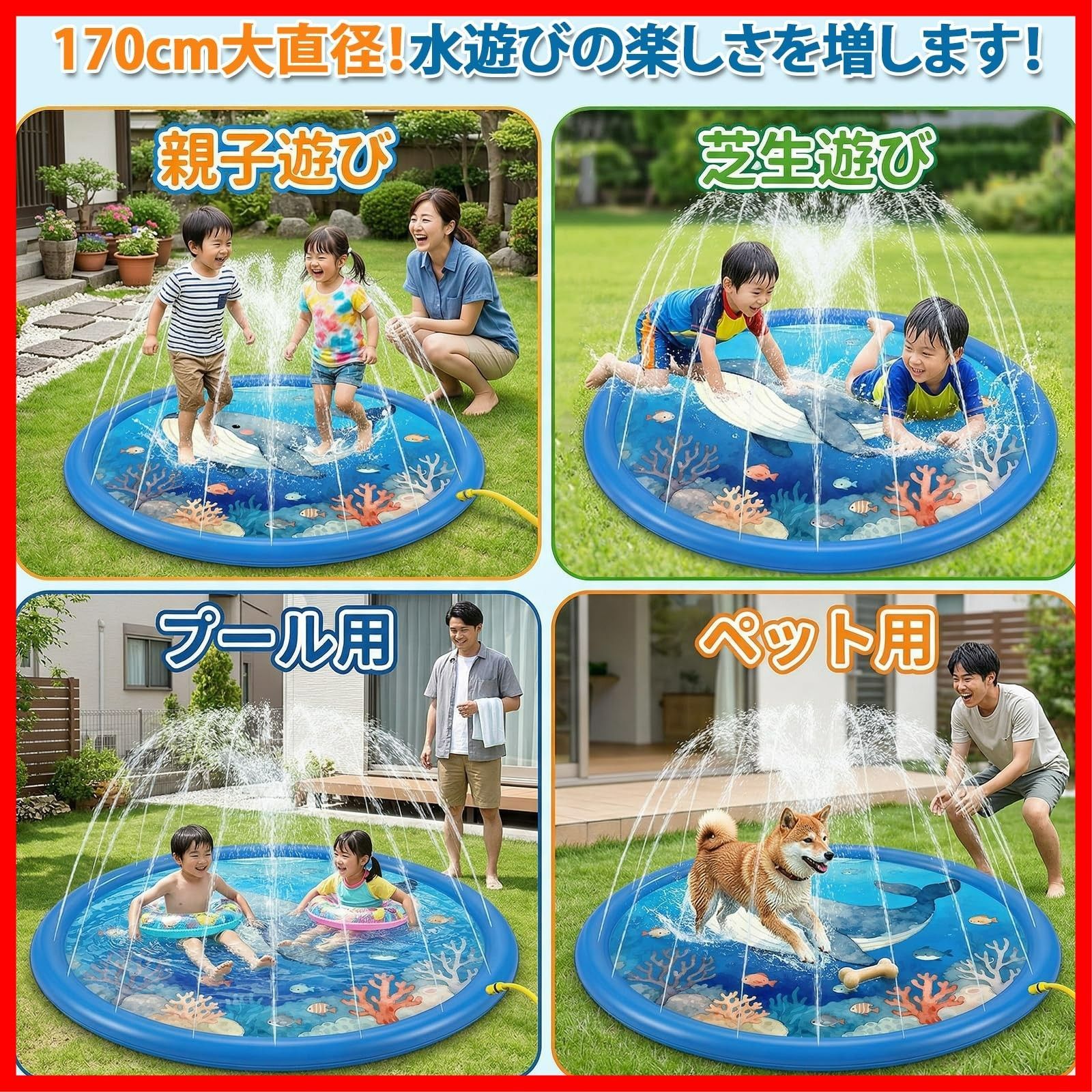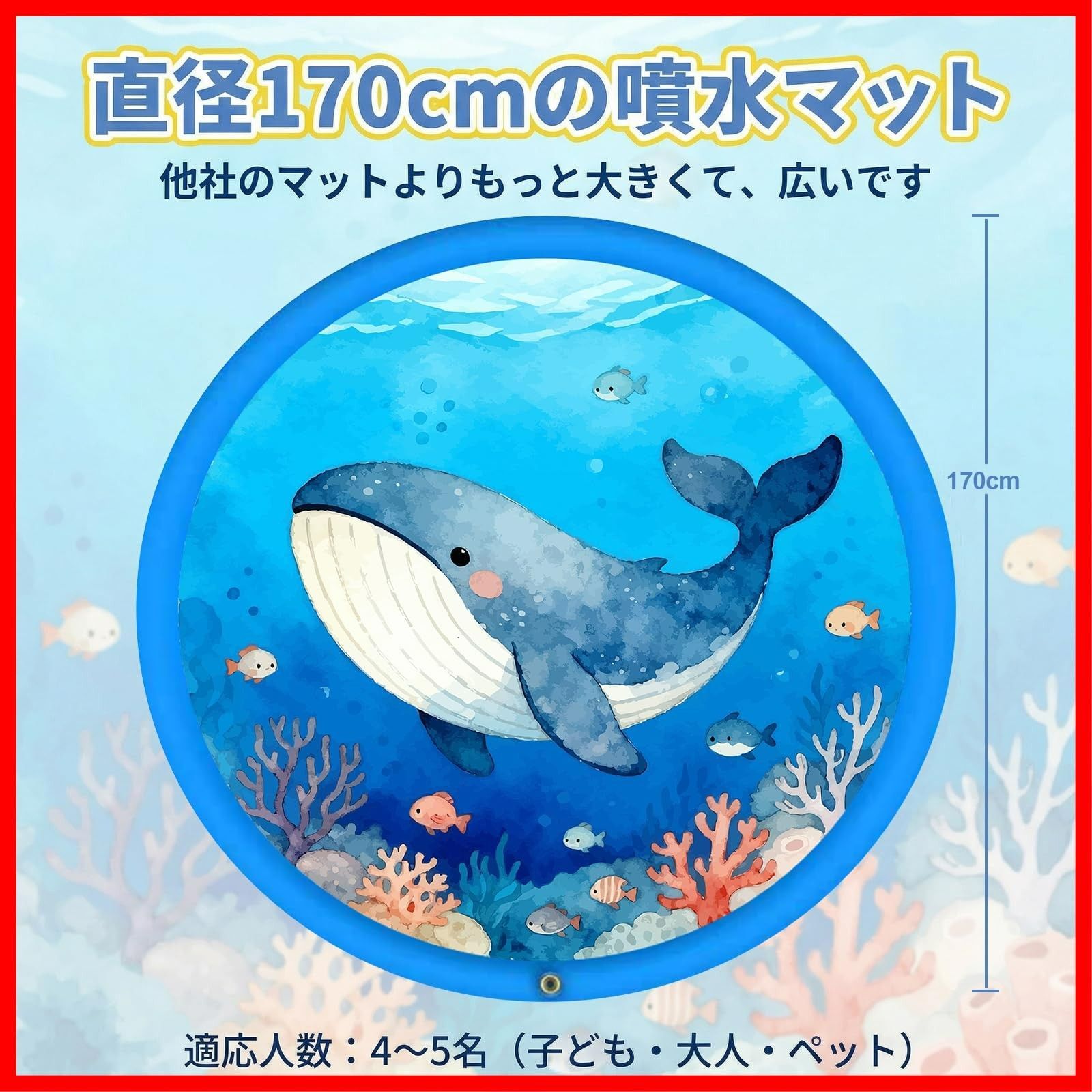 噴水マット 噴水プール Ninonly 直径170CM 子供用 ペット用 3段階の噴水高さ 空気入れ不要 かわいい プレイマット 水遊び プールマット 親子遊び 芝生遊び 家庭 夏対策(クジラ柄)