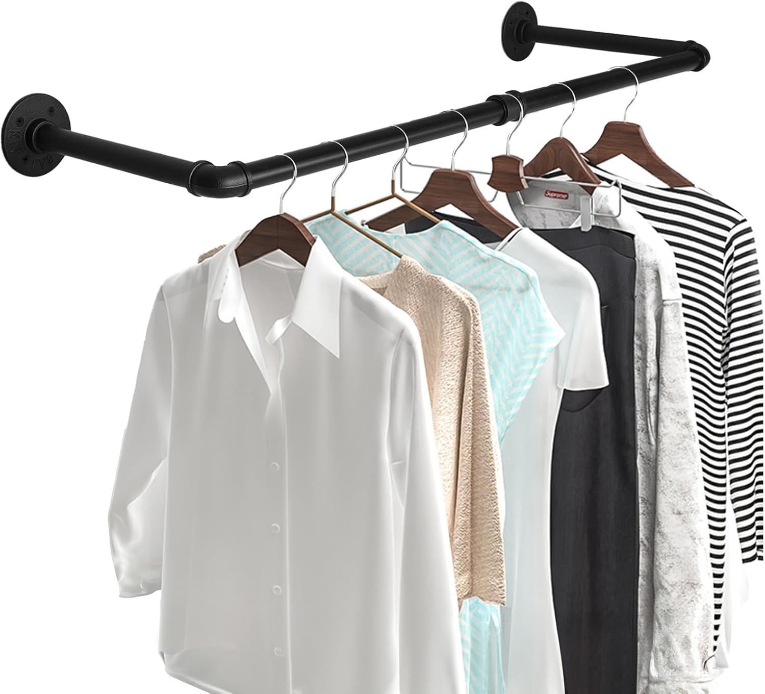 【丈夫で耐久性のある】非常に耐久性があり長持ちする黒色の強力な可鍛性鉄でできています。このレトロな洋服ラックは、かなりの量の洋服を収納でき、衣服やアクセサリーを常に整理整頓された状態に保ちます。