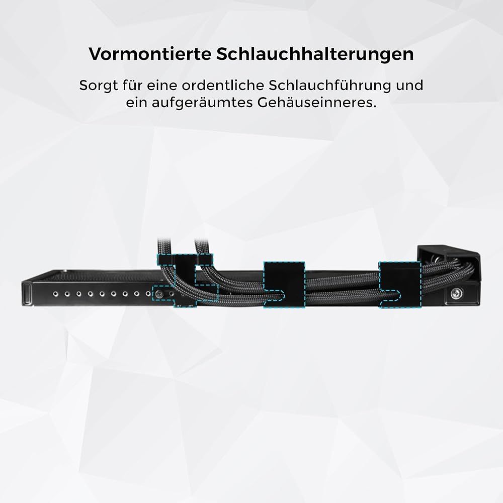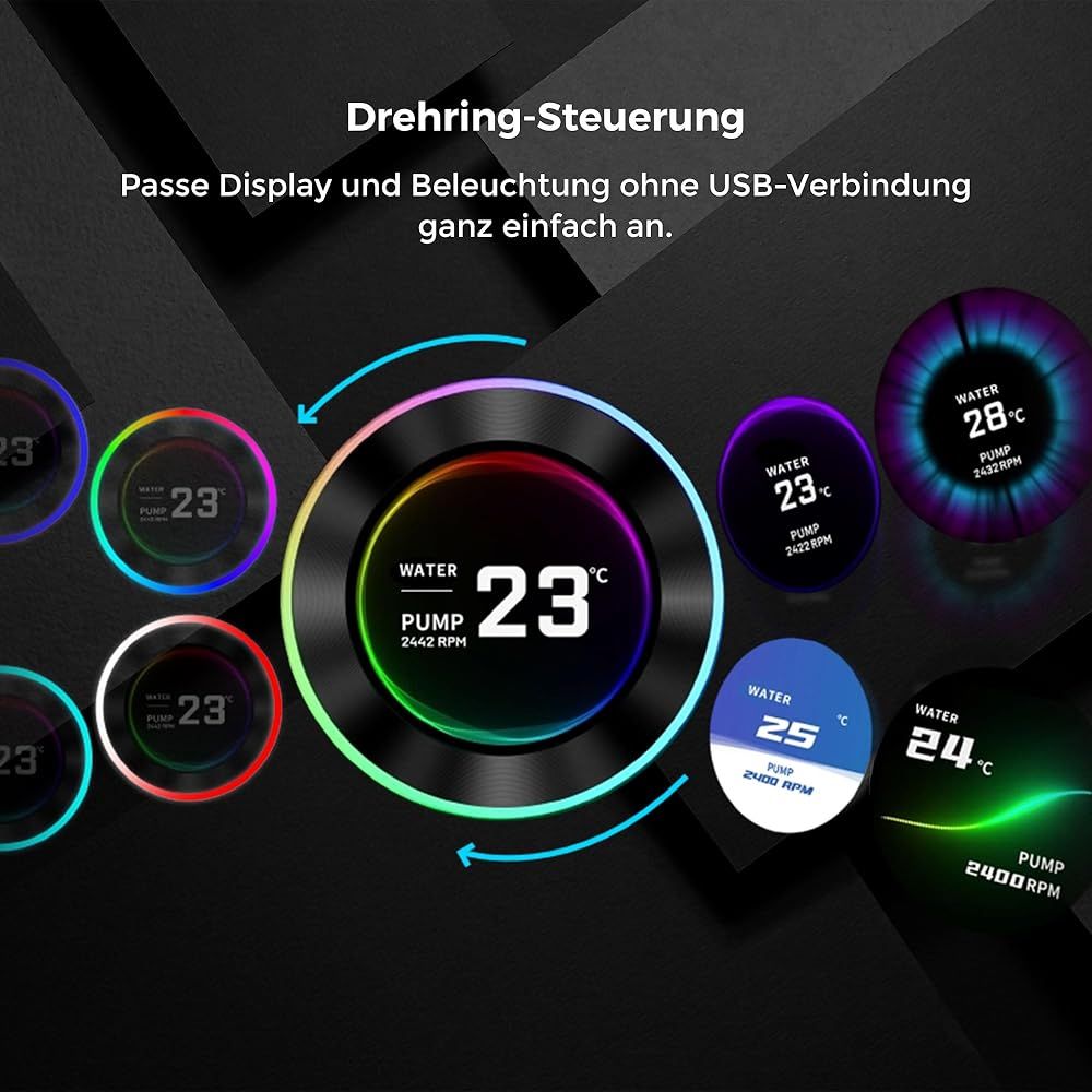 また、このARGBのリング部分を回転させることで簡易にイルミネーション効果やヘッドの表示テンプレートの変更が可能となっています。 「主な仕様」水冷チューブとラジエーターを一体化させセミチューブレスを実現したサイドマウントデザイン