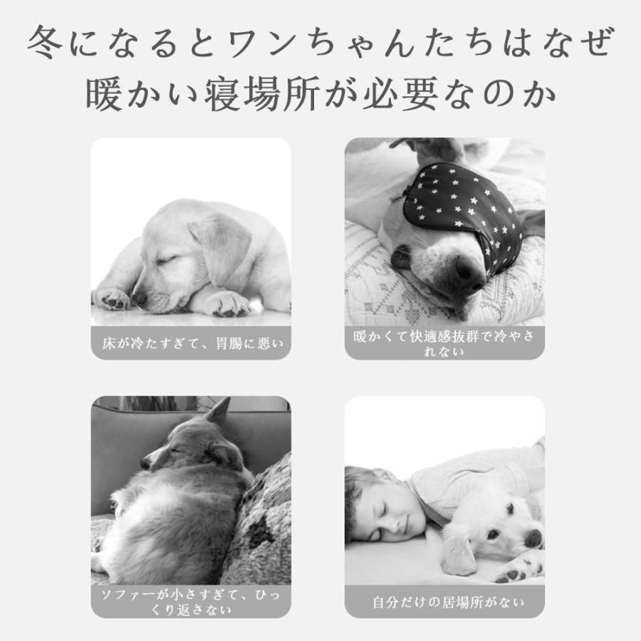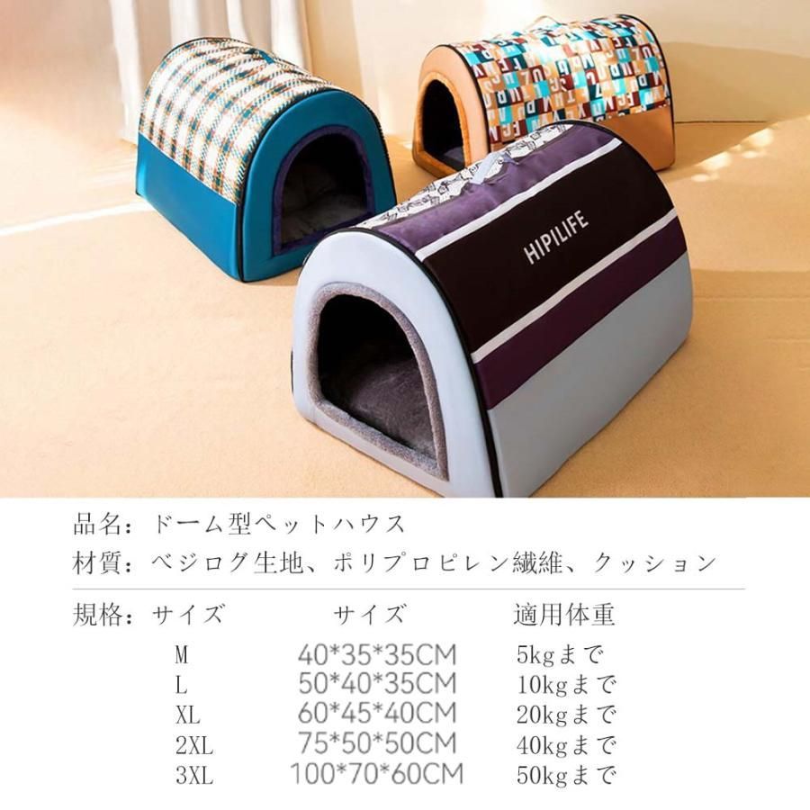 【※一時在庫なし、選択しないでください】 M(長さ40cm 幅35cm 高さ35cm) 5kg以内 L(長さ50cm 幅40cm 高さ35cm) 15kg以内 XL(長さ60cm 幅45cm 高さ40cm) 25kg以内 XXL(長さ75cm 幅50cm 高さ50cm) 40kg以内 XXXL(長さ100cm 幅70cm 高さ60cm) 60kg以内 ※注意:上記のサイズは生地のサイズです。縫いだ後は3cm小さくなります。予めご了承ください。もしペットが2つのサイズに合っている場合は、1サイズ上げることをお勧めします。 ドーム型の中にマットを置いてハウス型での使用と、天井を潰してその上にマットを置くベッド型の2通りの使い方ができます。ふわふわで柔らかい十分なあんしん感を感じられるペットハウスです。 ベッドの中はクッション性優れた3D立体PP綿で十分充填されておりますので、柔らかくてふわふわして、ペットに最高な寝心地を提供できる猫ペットベッド。ペットの冬用ベッドとして最適です。人間と同じ睡眠はペットにとっても重要なこと、高品質なペットベッドでより良い睡眠品質を提供致します。