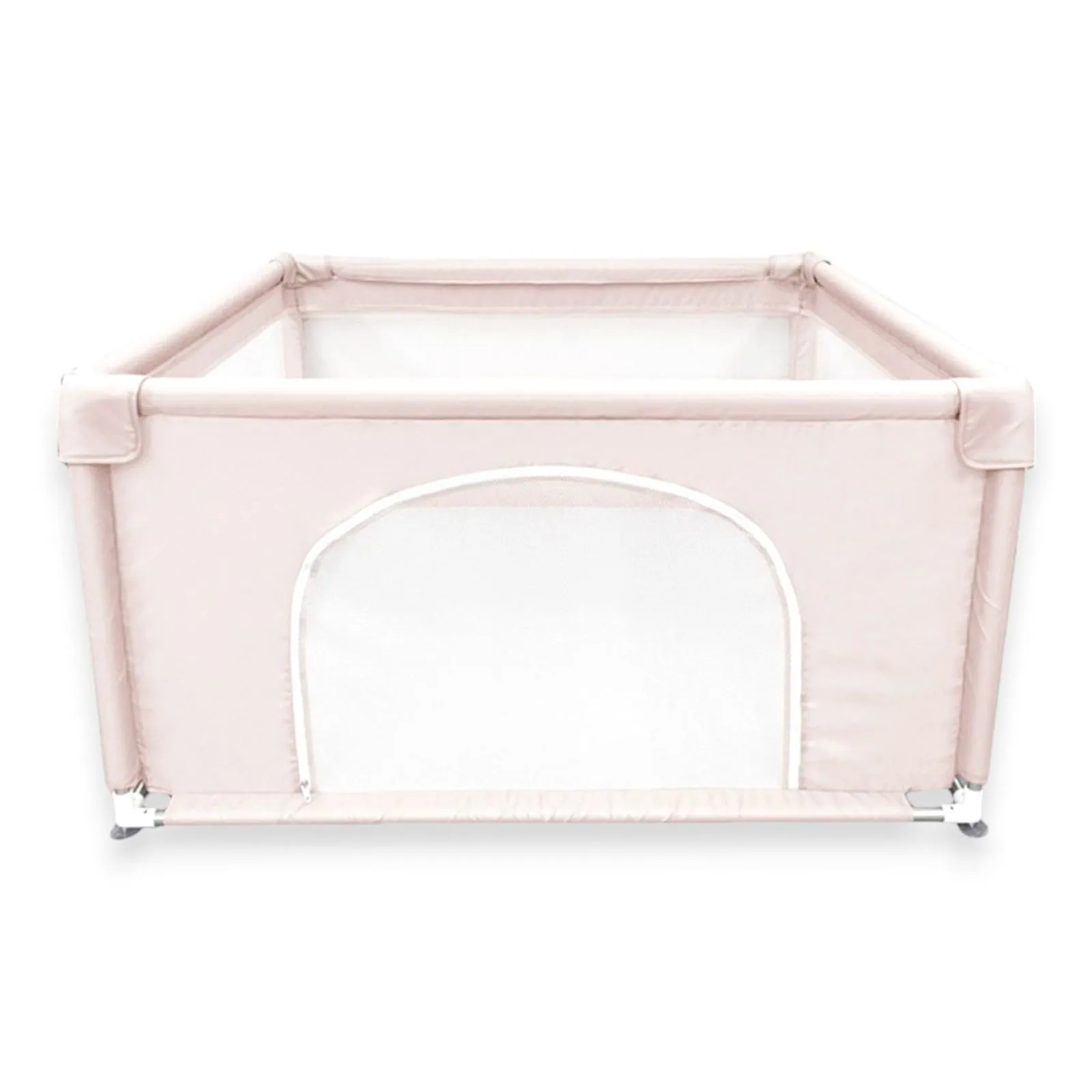 ベビーサークル Hugmuu 正方形 120cm Pale pink メッシュ ハイタイプ 扉付き プレイヤード 大きい 自立式 ベビーゲート ベビー フェンス サークル 洗濯可能 洗える 赤ちゃん 子供 (120*120 Pale pink)
