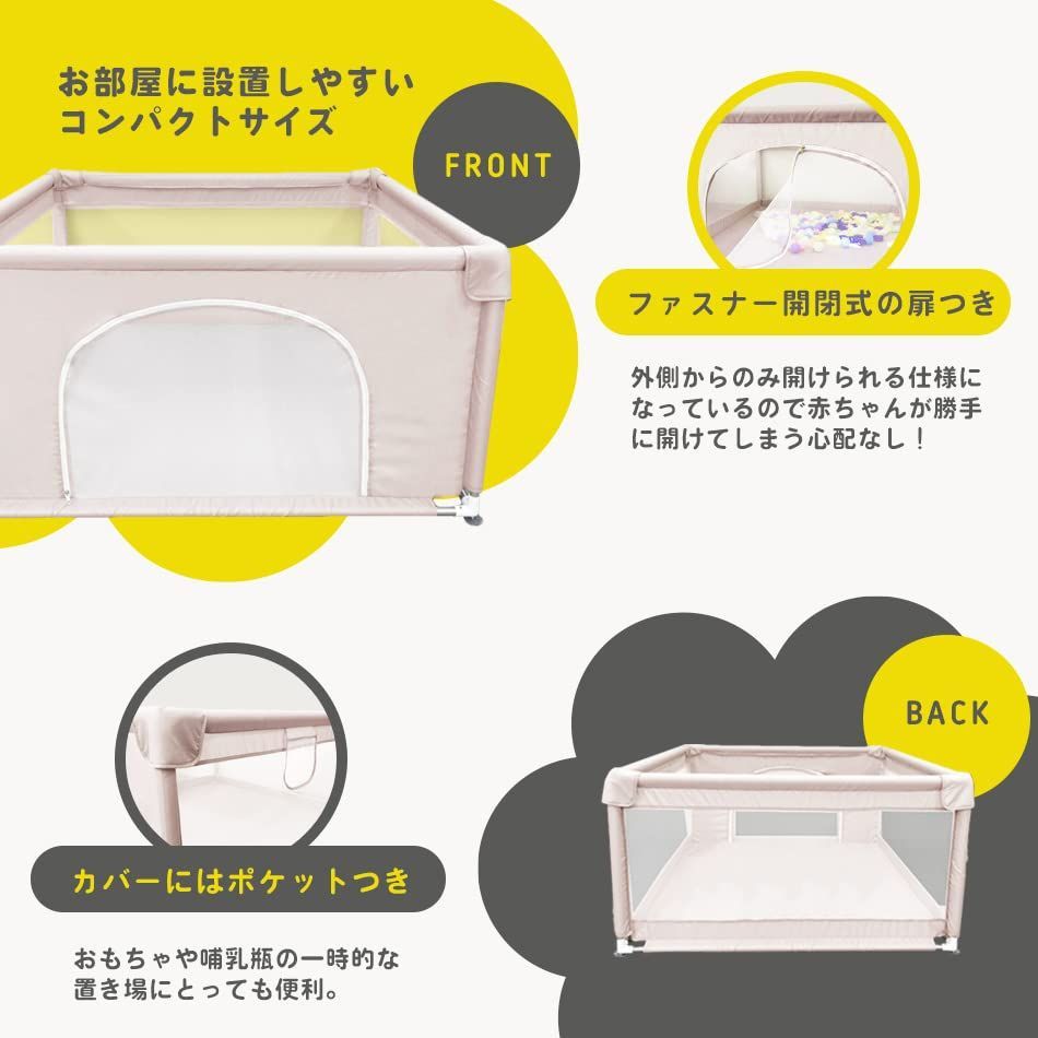 【ちょうどいい広さの空間で自由な使い方を】一辺120cmの正方形タイプ。程よい大きさで置く場所にも困りません。カバーにはポケットつき。おもちゃや哺乳瓶の一時的な置き場にとっても便利です。 サイズ:横約120cm×縦約120cm×高さ約66cm、内寸:約116cm×約116cm、重量:約2.85kg、※実寸・内寸は組み立て方により前後致します。※本商品は折り畳みタイプではございません。