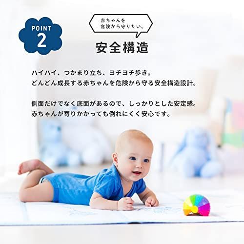【安全構造】カバーは柔らかいメッシュタイプで、側面だけでなく底面があるので赤ちゃんが寄りかかっても倒れにくく、しっかりとした安定感があります。底面の四つ角のジョイントには大きな吸盤付き。上部にはジョイントを隠すカバーもついているのでサークルが動いてしまう心配も、いたずらされてしまう心配もありません。