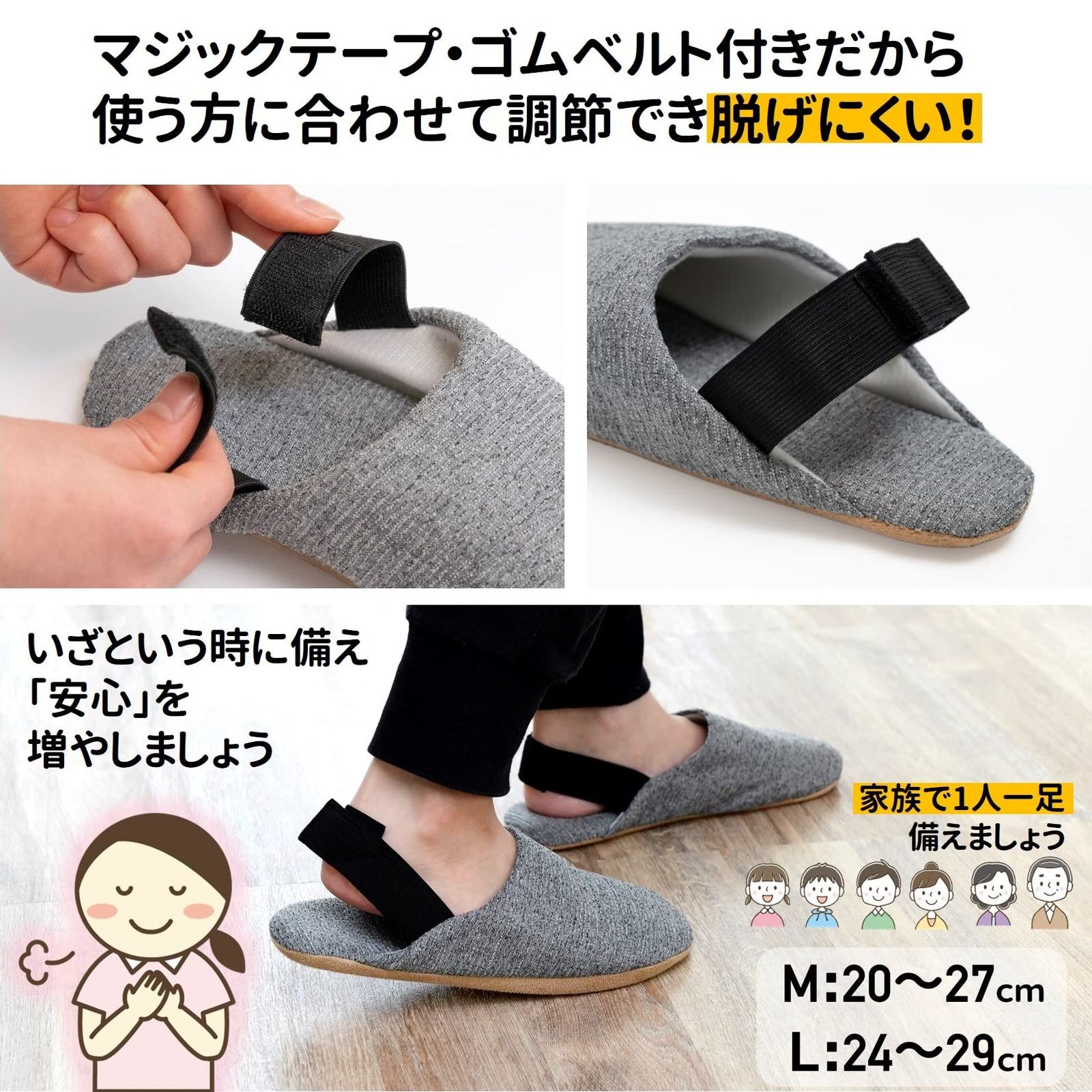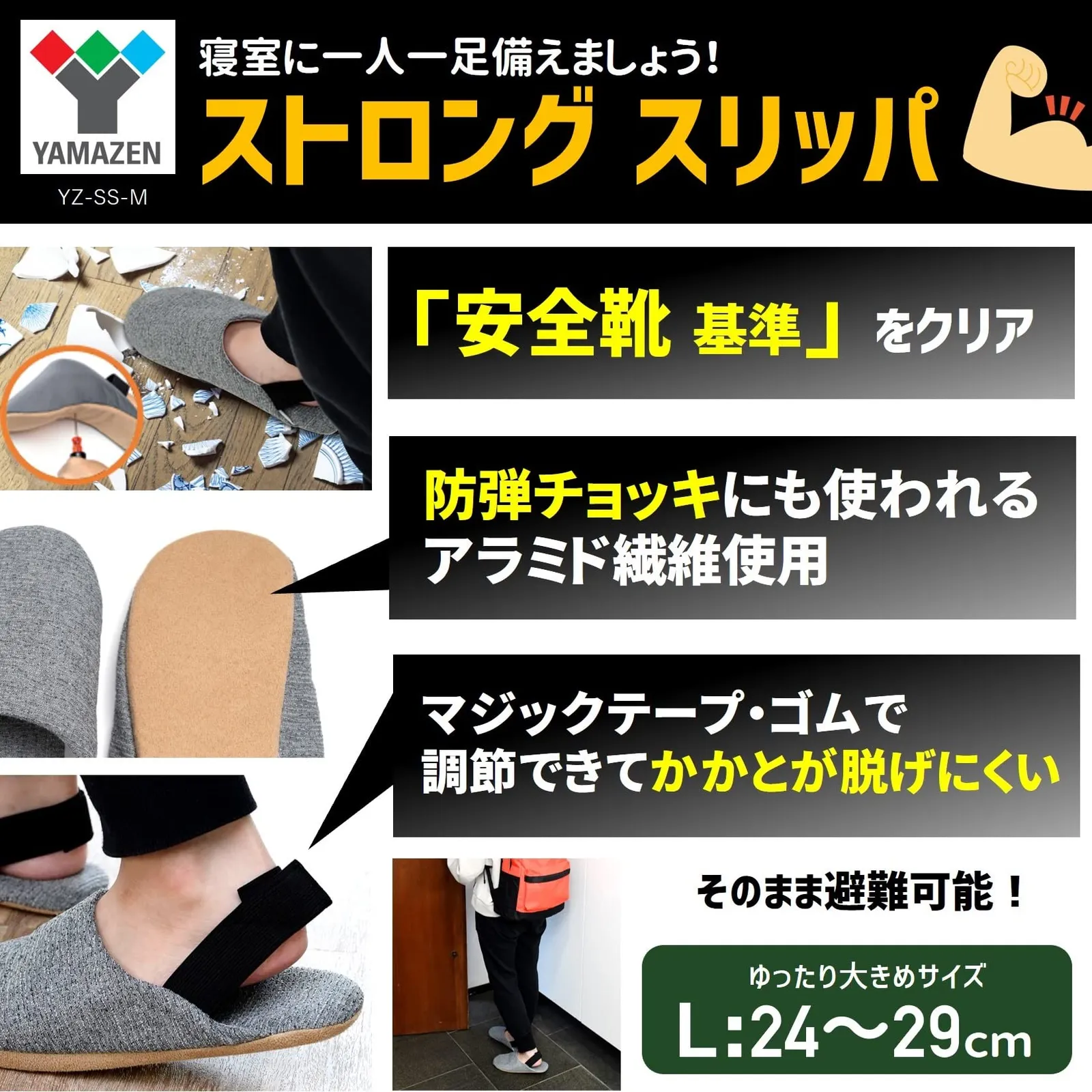 特価商品 [山善] スリッパ 室内 L ストロングスリッパ 防災 ルームシューズ 釘を通さない 防災士監修 地震対策 外履き 避難 室内履き 脱げにくい(かかとゴム付き) YZ-SS-L
