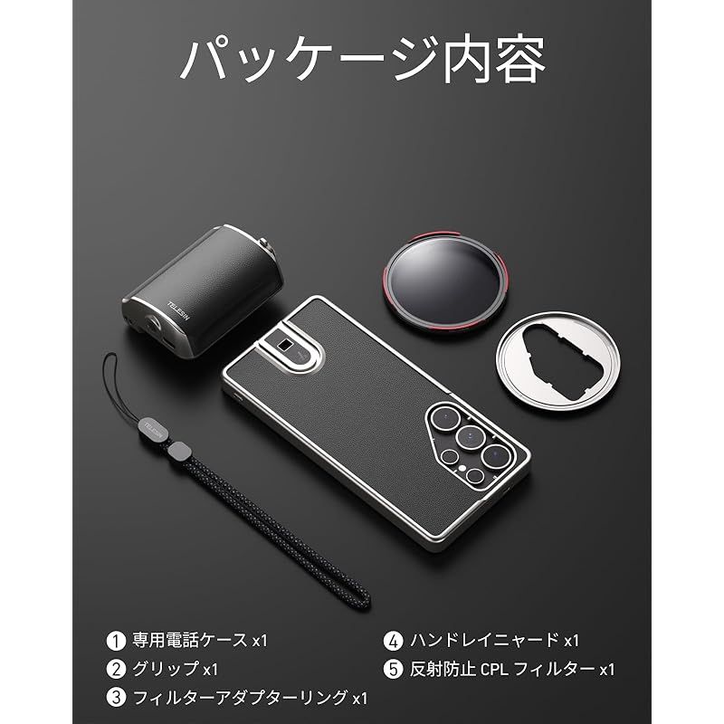 【対応機種:Galaxy S25 Ultra専用設計】本マスターグリップはGalaxy S25 Ultra専用写真撮影キットです。同梱内容:マスターグリップ撮影グリップ×1、専用スマホケース×1、67mmCPL偏光フィルター×1、ハンドルストラップ×1、フィルターアダプターリング×1。