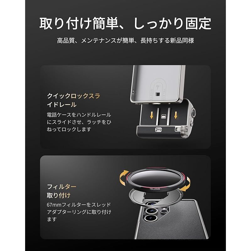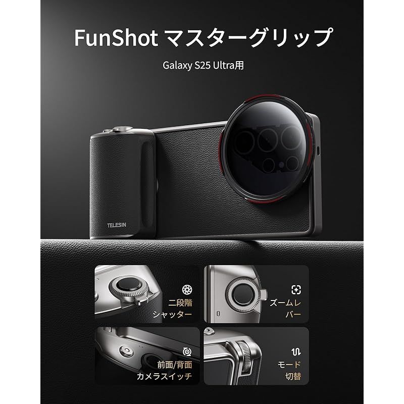 TELESIN FunShot マスターグリップ写真撮影キット(スマホカメラグリップ+スマホケース+67mm ND2-ND32 VND減光フィルター)Galaxy S25 Ultra専用 快適人間工学設計 自撮りグリップ ズーム機能 フロ・リアレンズ切替 0