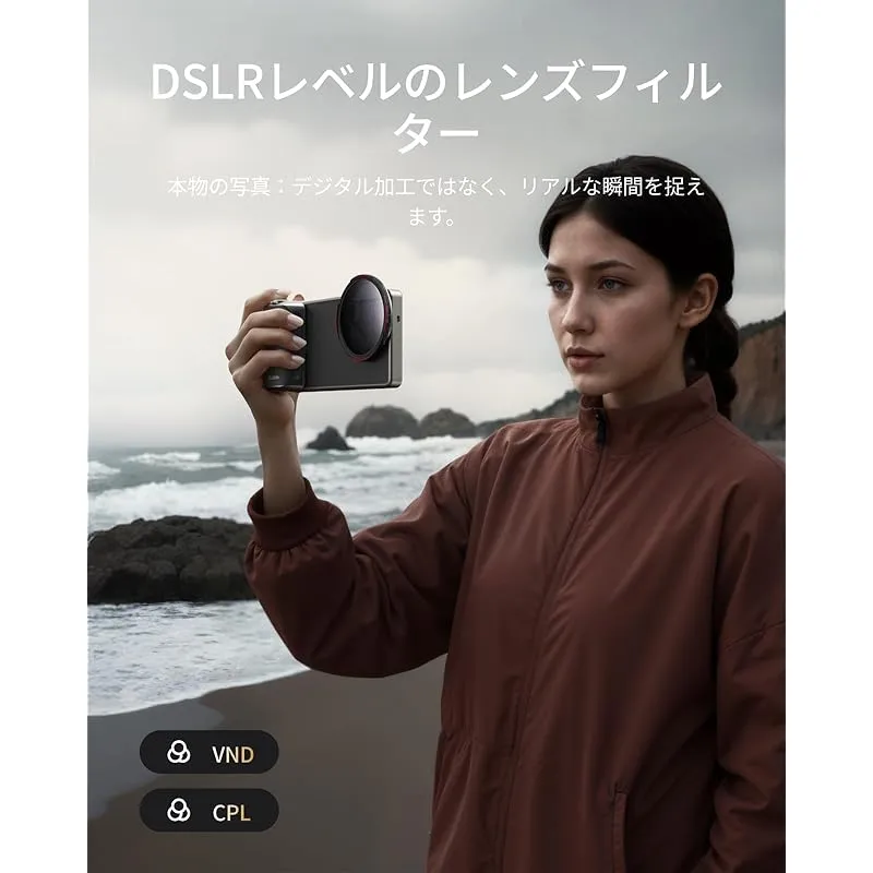 【豊富なアクセサリー拡張性】標準1/4インチ三脚ネジコネクター搭載で、柔軟な拡張が可能。三脚やマイクなど、様々なアクセサリーを追加接続できます。マルチ機能なユーザー体験で、モバイル写真・動画撮影のあらゆるシーンをレベルアップ。