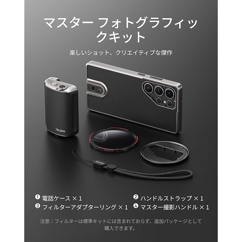 TELESIN FunShot マスターグリップ写真撮影キット スマホカメラグリップ+スマホケース+67mm CPL偏光レンズ+ND2-ND32 VND減光ミラー)Galaxy S25 Ultra専用 快適人間工学設計 自撮りグリップ ズーム機能 フロ・リ 0