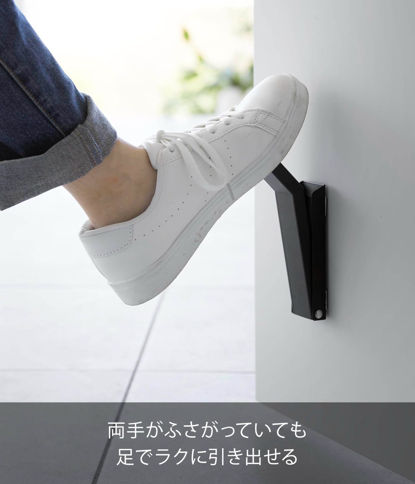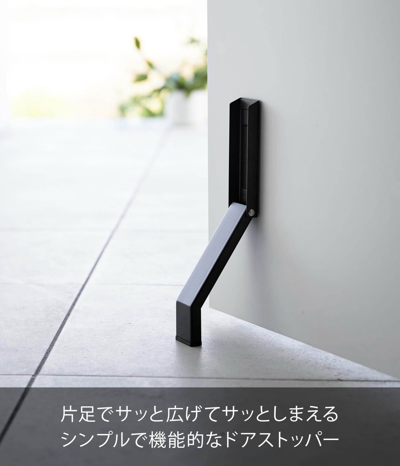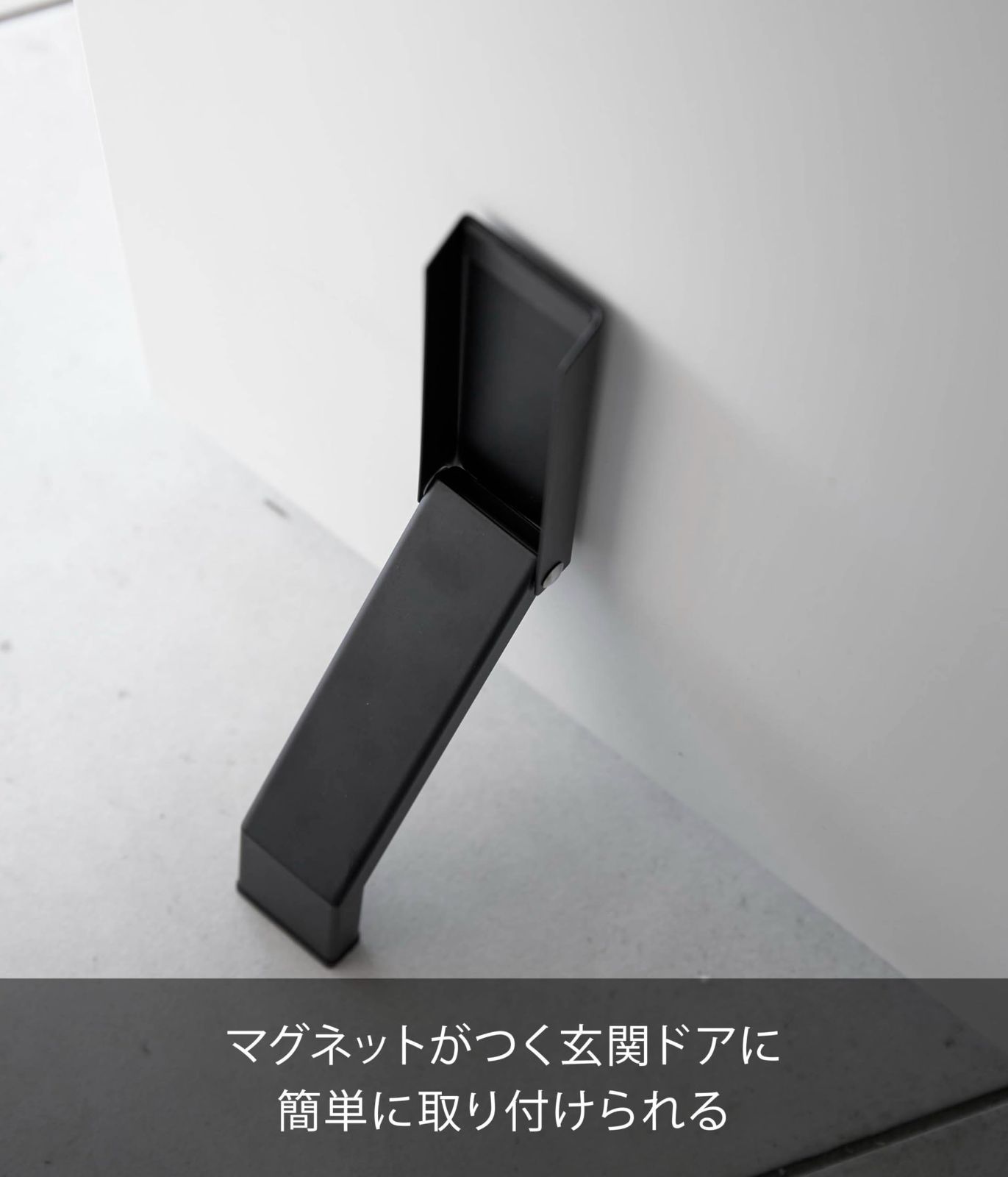 【在庫セール】山崎実業(Yamazaki) マグネット 折り畳みドアストッパー ブラック (使用時)約W4.5×D7×H28cm タワー tower 強力マグネット 簡単取付 玄関ドア 片足で操作可能 3721