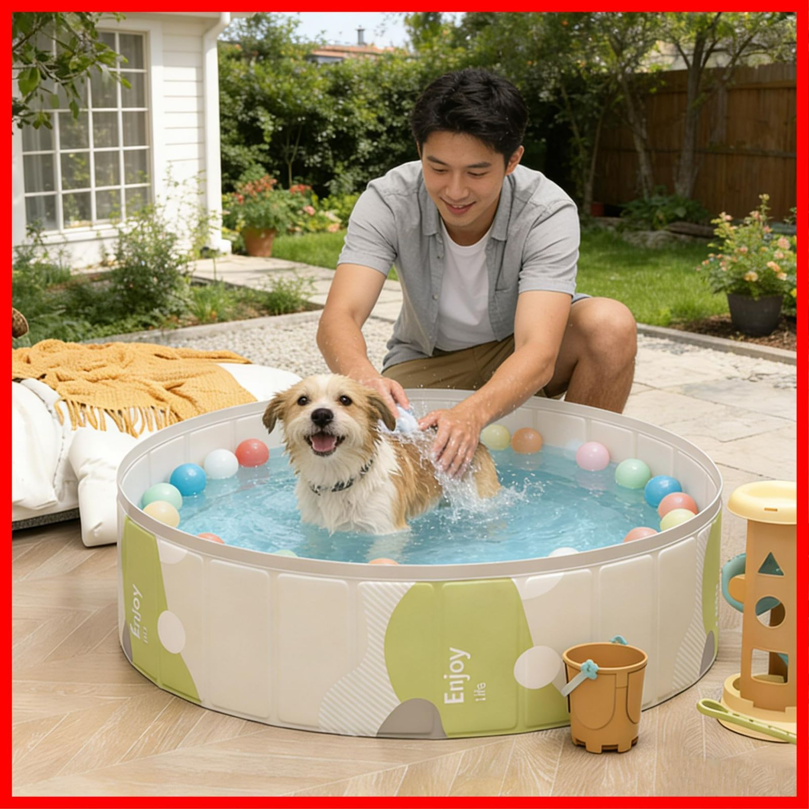 4.犬の水遊びプールとしてだけでなく、ボールプールやシャワーバスとしても使用できます。屋外でも室内でも使用でき、暑い季節に大活躍です。