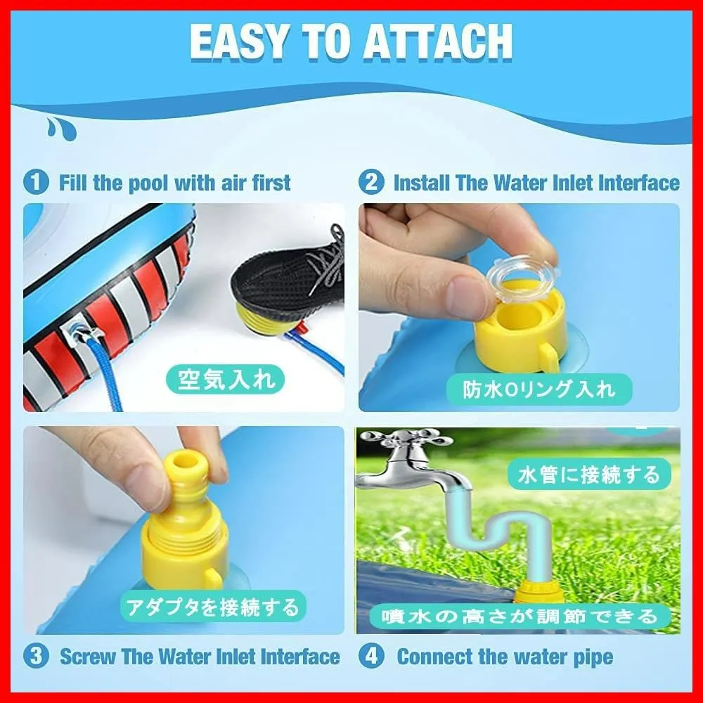 【夏に最高なな噴水プール】夏の大人気なアウトドアおもちゃ!芝生やお庭に置いて、家族が一緒に夏を楽しく過ごして!!海やプールに行く暇がない時に、庭で家族や友達やペットと一緒に噴水プールを遊ぶことができます。夏の暑さにもかかわらず、噴水パーティーで楽しい思い出を作ります。