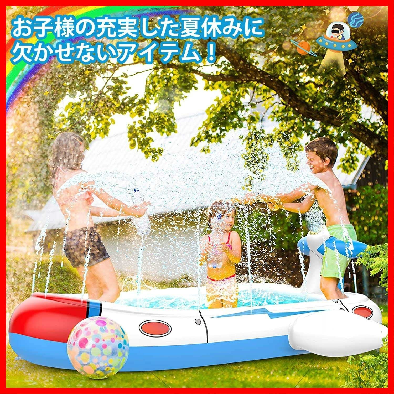 芝生遊び 夏の日 持ち運び便利 庭 おもちゃ 噴水 ビニールプール 親子遊び 水遊び プレイマット 家庭用 96cm 奥行き アウトドア x 幅180cm 誕生日プレゼント 大型 子供用 6歳以上 噴水プール SVNVIOZ