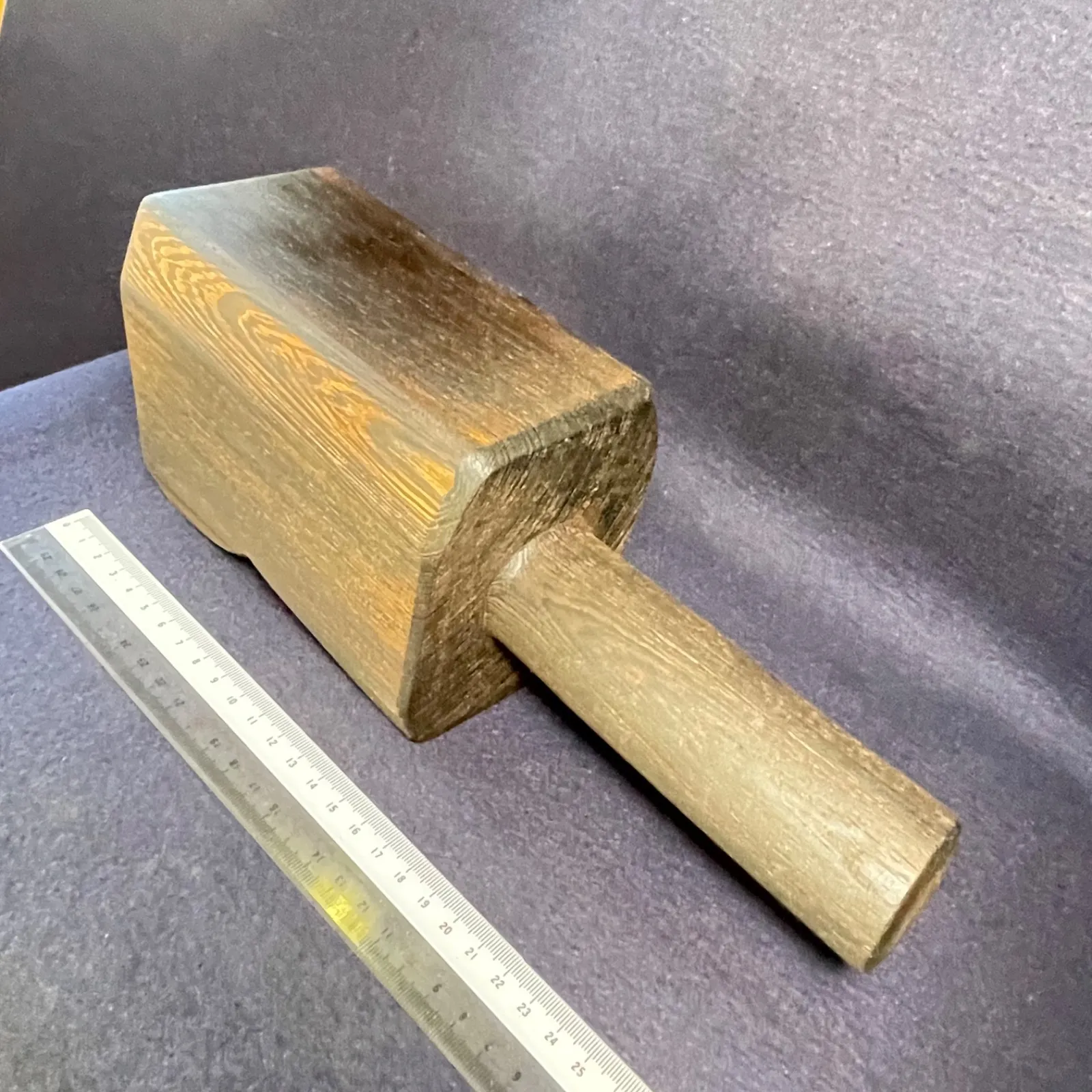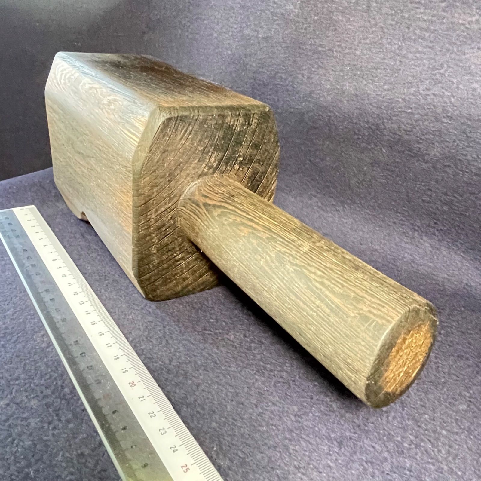 アウトドアでのバトニング棒に限らず、工作、通常の木彫り等、楮、藁、たたき胡瓜、肩たたき、指圧、マッサージなど、何かを叩いたり、押したりする時に、お使いいただけます。トレーニング用のダンベルにもなります。一般的な木槌の重さは特大1kg、大650g、中450g、小300gくらいです。
