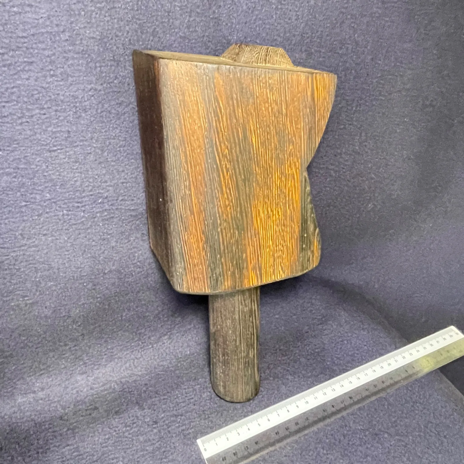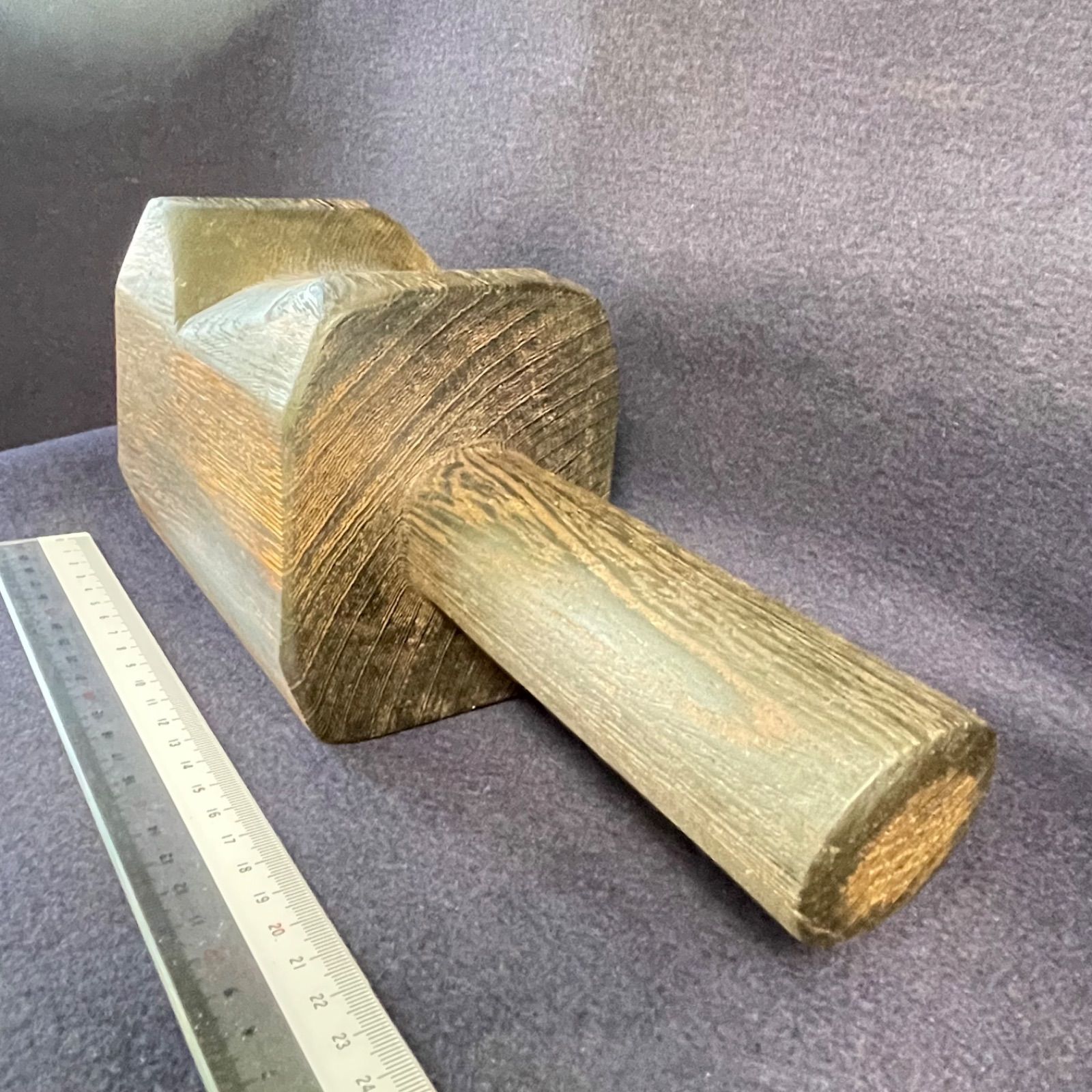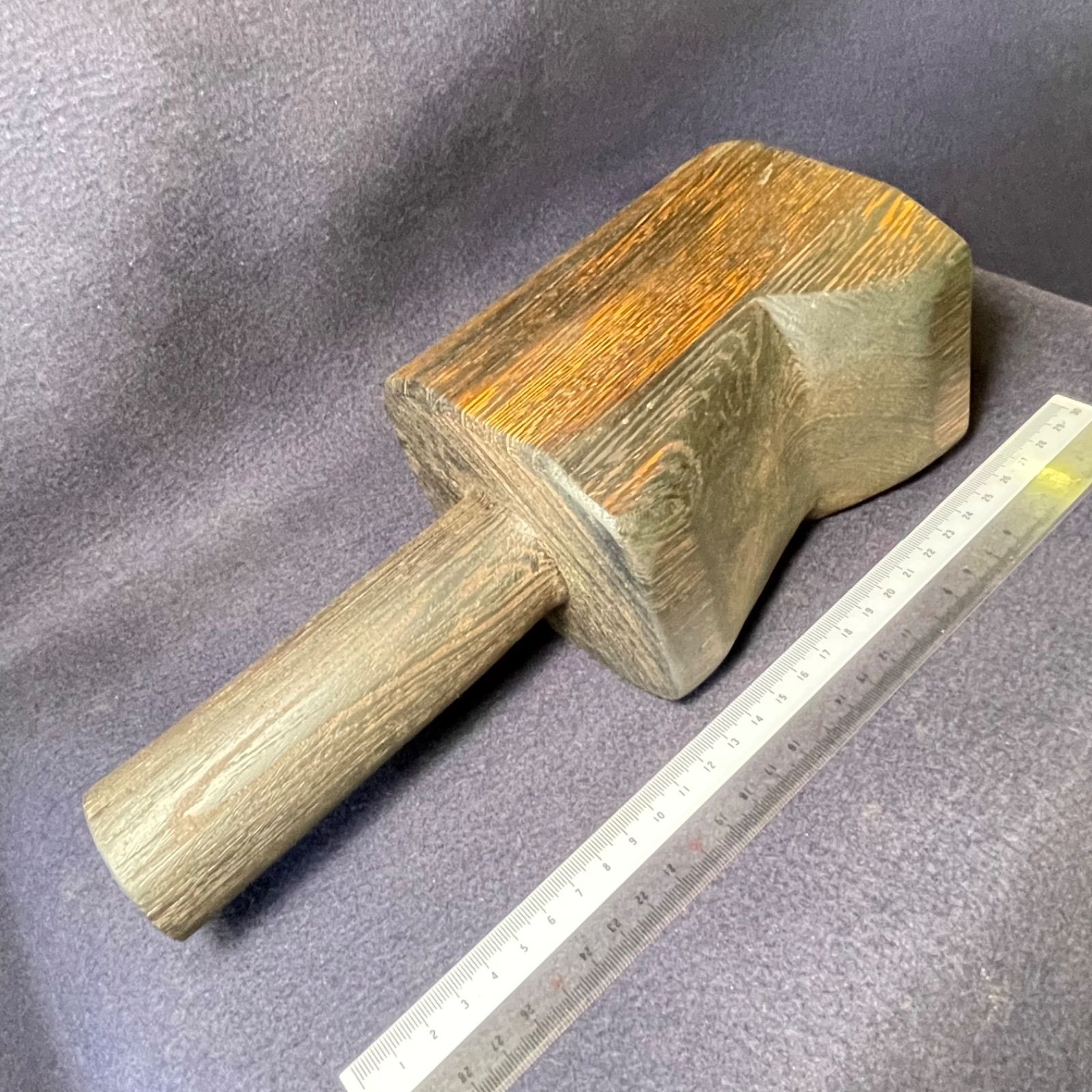 木彫 木槌(マレット)「鉄刀木•BB1404」1404g タガヤサン杢 1木彫 手彫り 創作 無垢 バトニング棒 ダンベル アウトドア