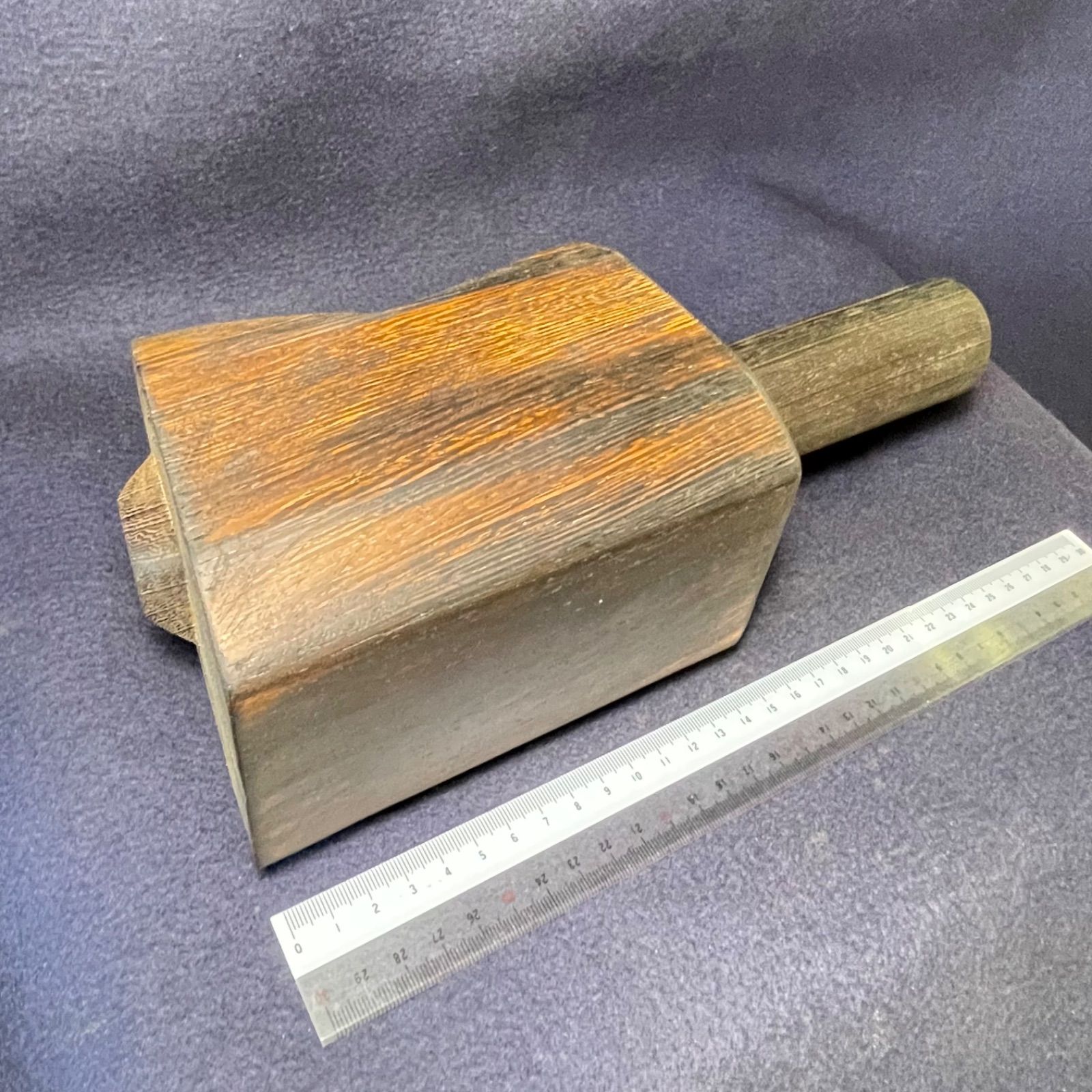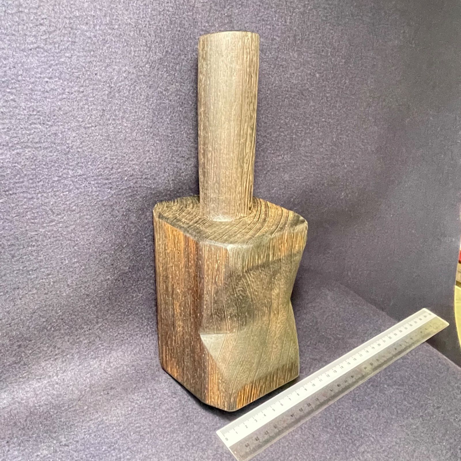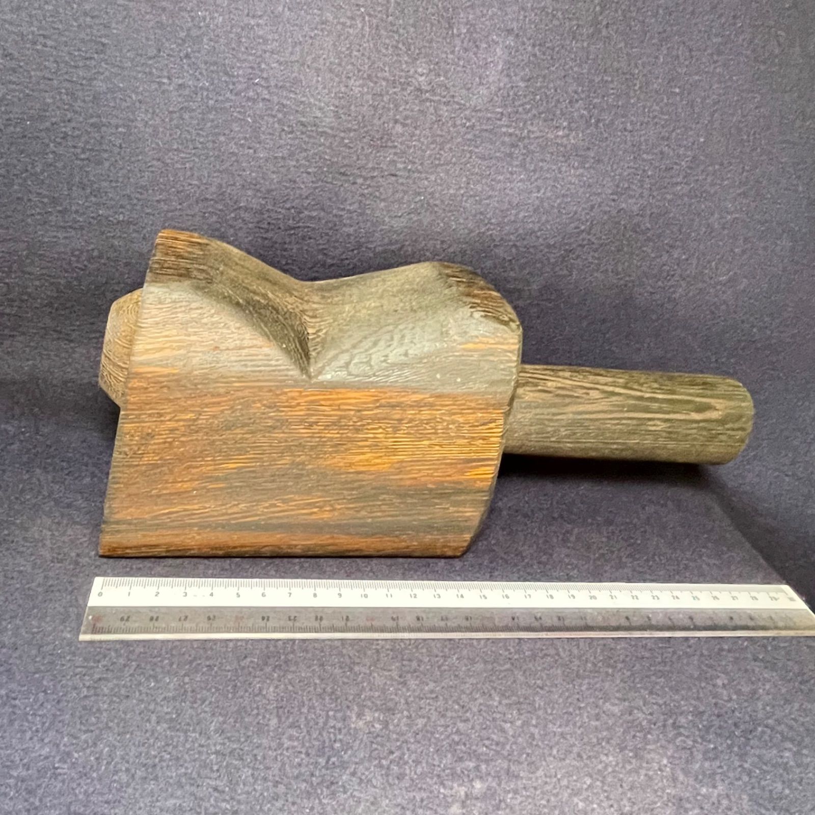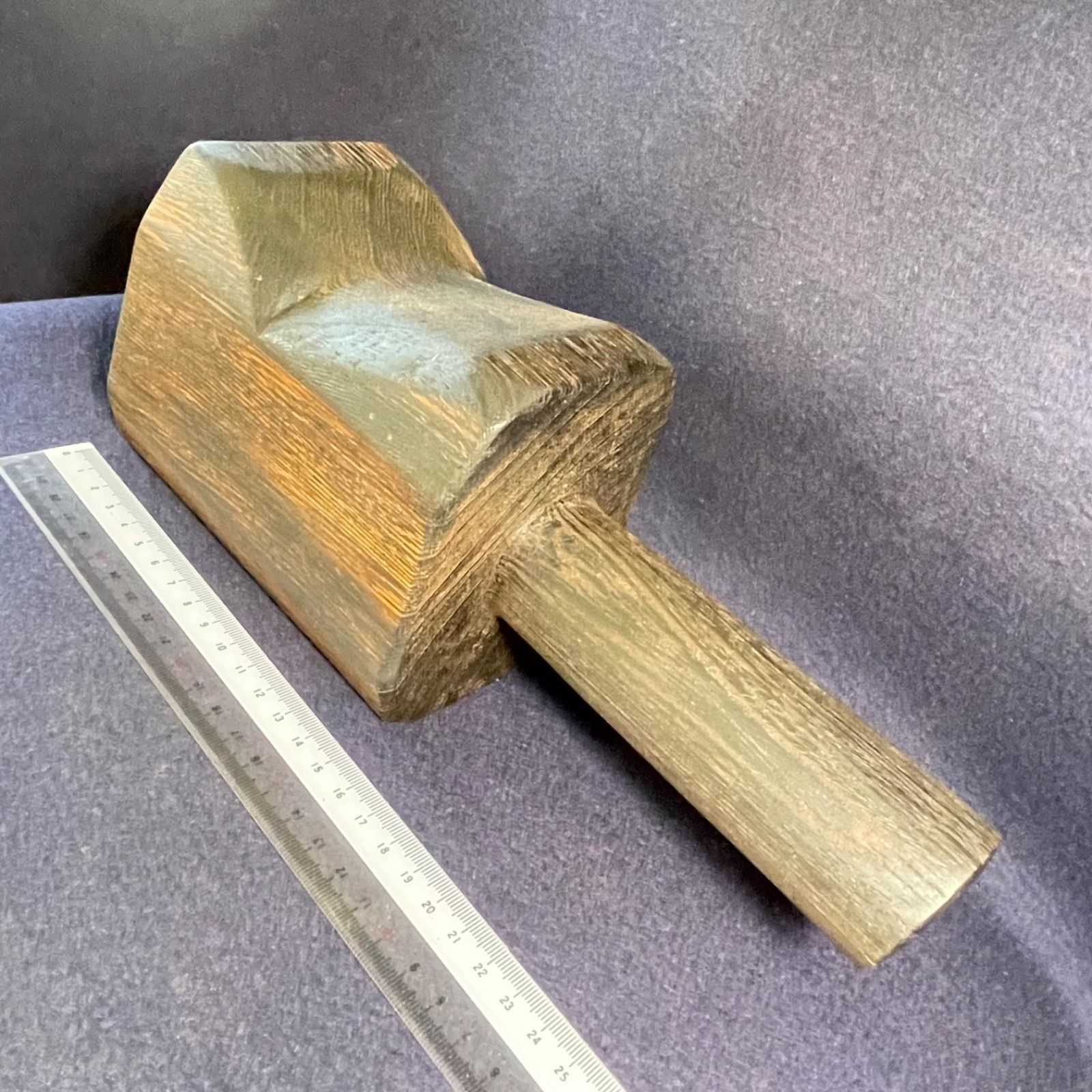 木彫 木槌(マレット)「鉄刀木•BB1404」1404g タガヤサン杢 1木彫 手彫り 創作 無垢 バトニング棒 ダンベル アウトドア