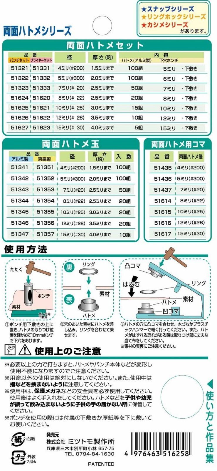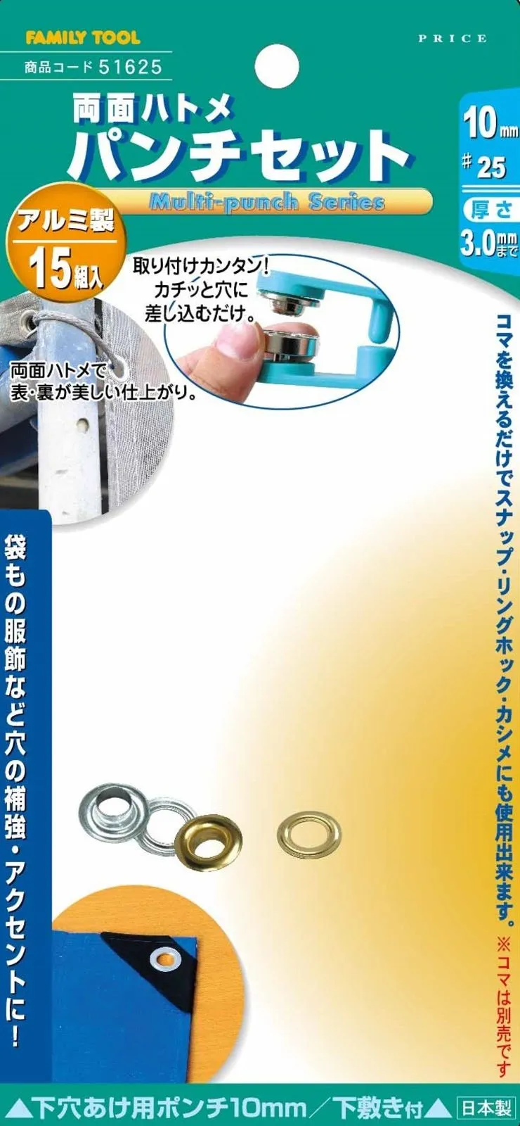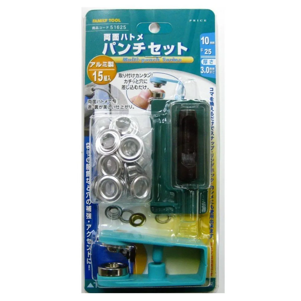 イチネンアクセス FAMILY TOOL(ファミリーツール) ハトメ 両面ハトメ パンチセット 51625 10mm(#25) アルミ製 15組入