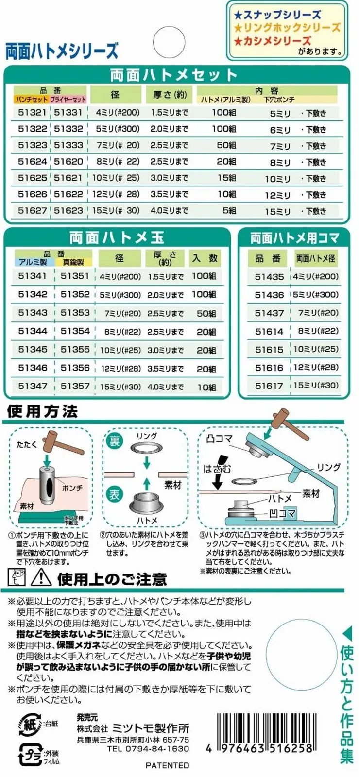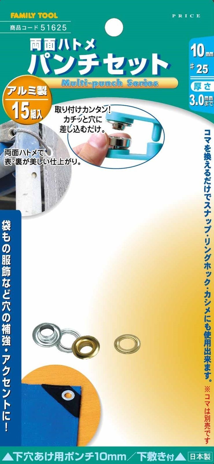 【特価商品】イチネンアクセス FAMILY TOOL(ファミリーツール) ハトメ 両面ハトメ パンチセット 51625 10mm(#25) アルミ製 15組入