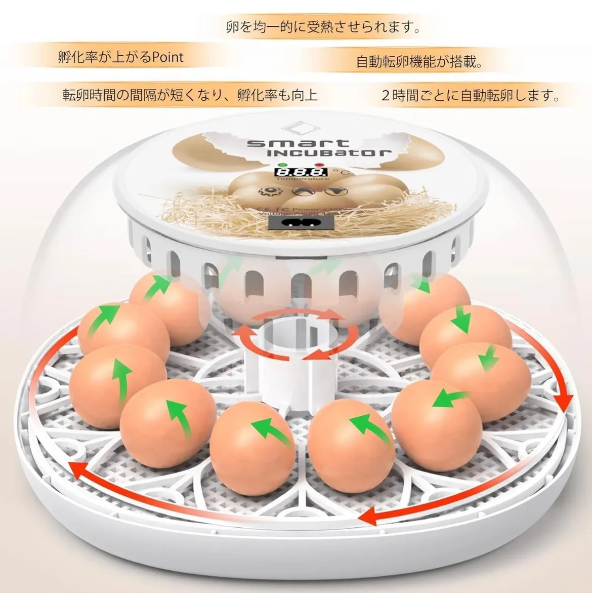 【大容量&多種類な孵化】毎回12個ニワトリサイズの卵を孵化できる大容量な全自動孵卵器です。ニワトリ12個、ウズラ卵、すずめ卵24~36個など様々な種卵に対応できます。いろんな種卵の孵卵にチャレンジできます。種卵の大きさによって、可能な孵化の数も違っています。 731 $$5299