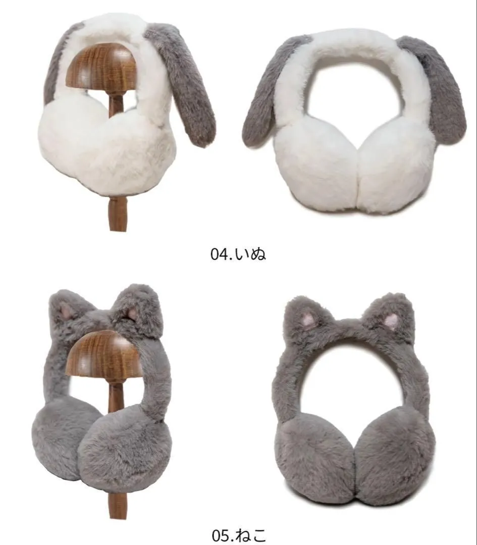 ■ポイント ・暖かい肌触りの良いファー ・お出かけが楽しくなるデザイン ・簡単装着 ・サイズ調整可能 ・プレゼントにもおすすめ サイズ フリーサイズ(約48cm〜52cm) ※アームが左右に伸びてサイズの微調整が可能です。 ※1~3(小学校低学年位まで)に比べて、4.いぬと5.ねこの方がやや小さめのサイズ感です(未就学児さんにおすすめ) 素材 アーム部分:ポリアセタール ボア部分:基布 ポリエステル / パイル / アクリル 4.5.ポリエステル 注意事項