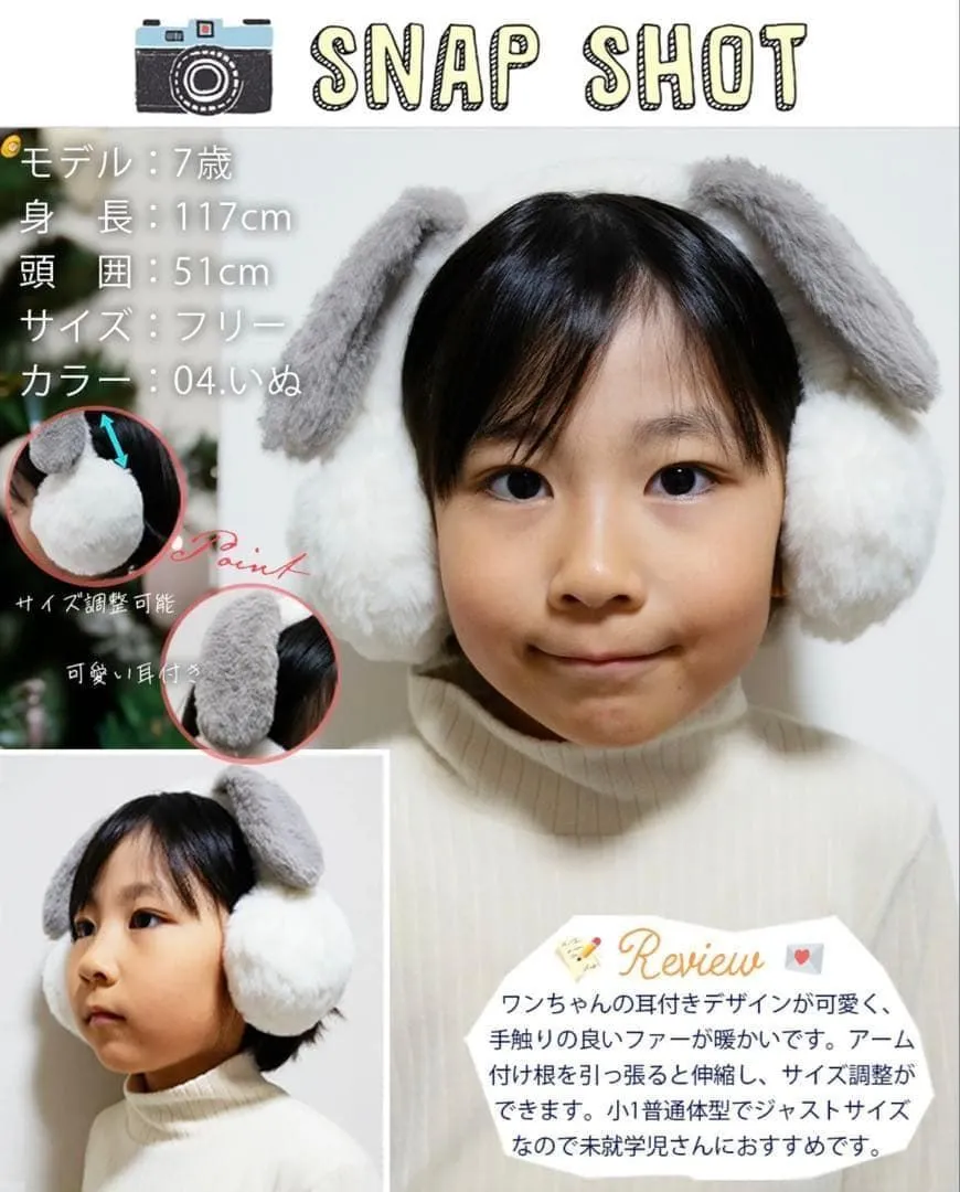 ■アイテム説明 寒い日のお出かけを楽しんでいただきたい‥そんな想いのこもったモチーフが可愛いデザインのイヤーマフラーです。 手触りの良いファーを使用し、可愛いだけではなくしっかり防寒対策ができます。 お子様自身で簡単にサイズ調整が可能。耳にフィットして暖かくお過ごしいただけます。