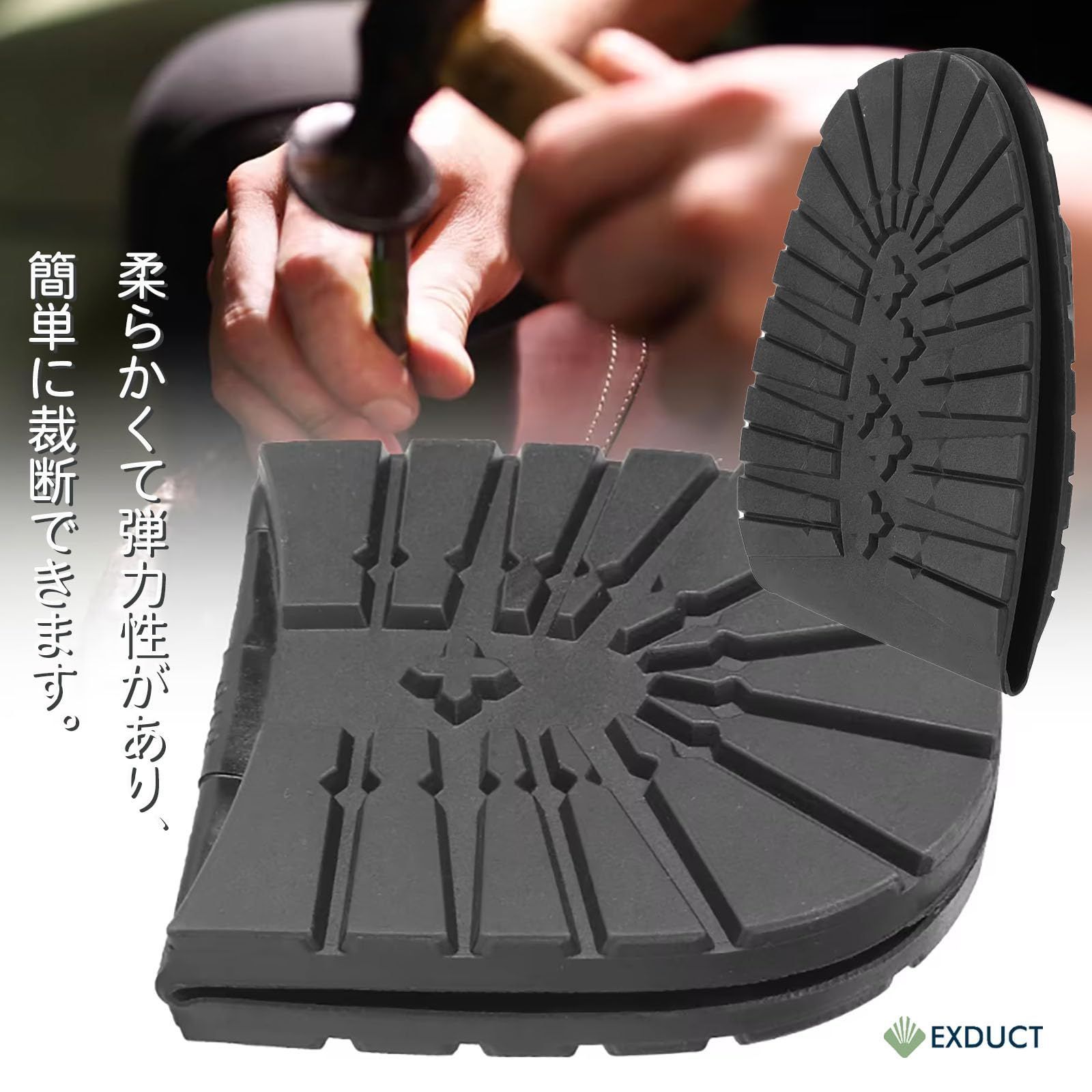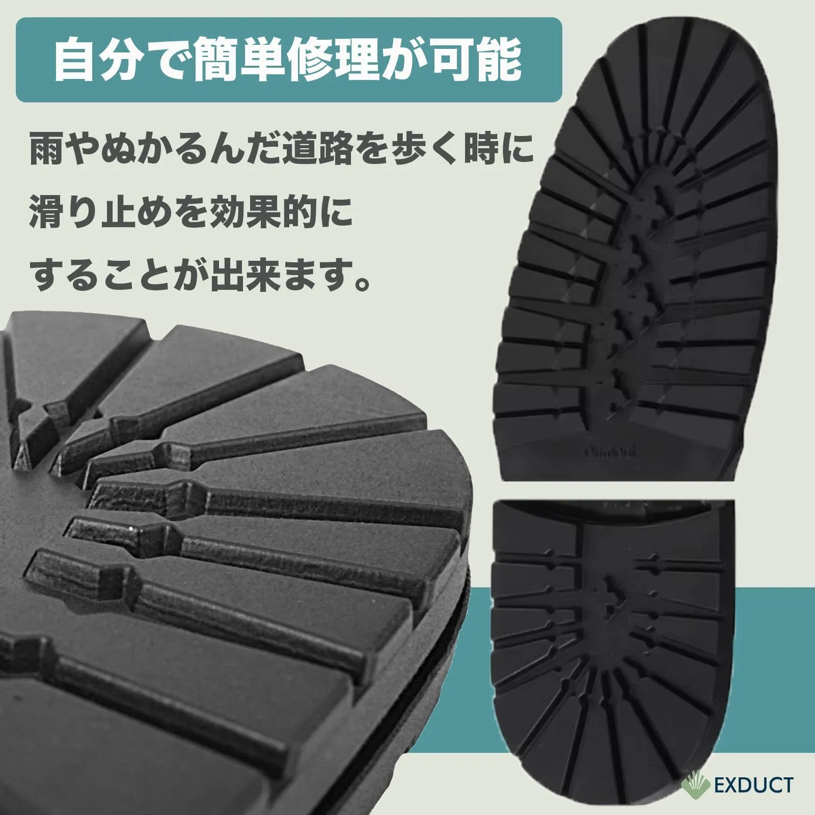 靴底の補修および滑り止めの強化にご使用しただけます。溝がしっかり彫られたデザインなので雨やぬかるんだ道でも滑りにくくなります。
