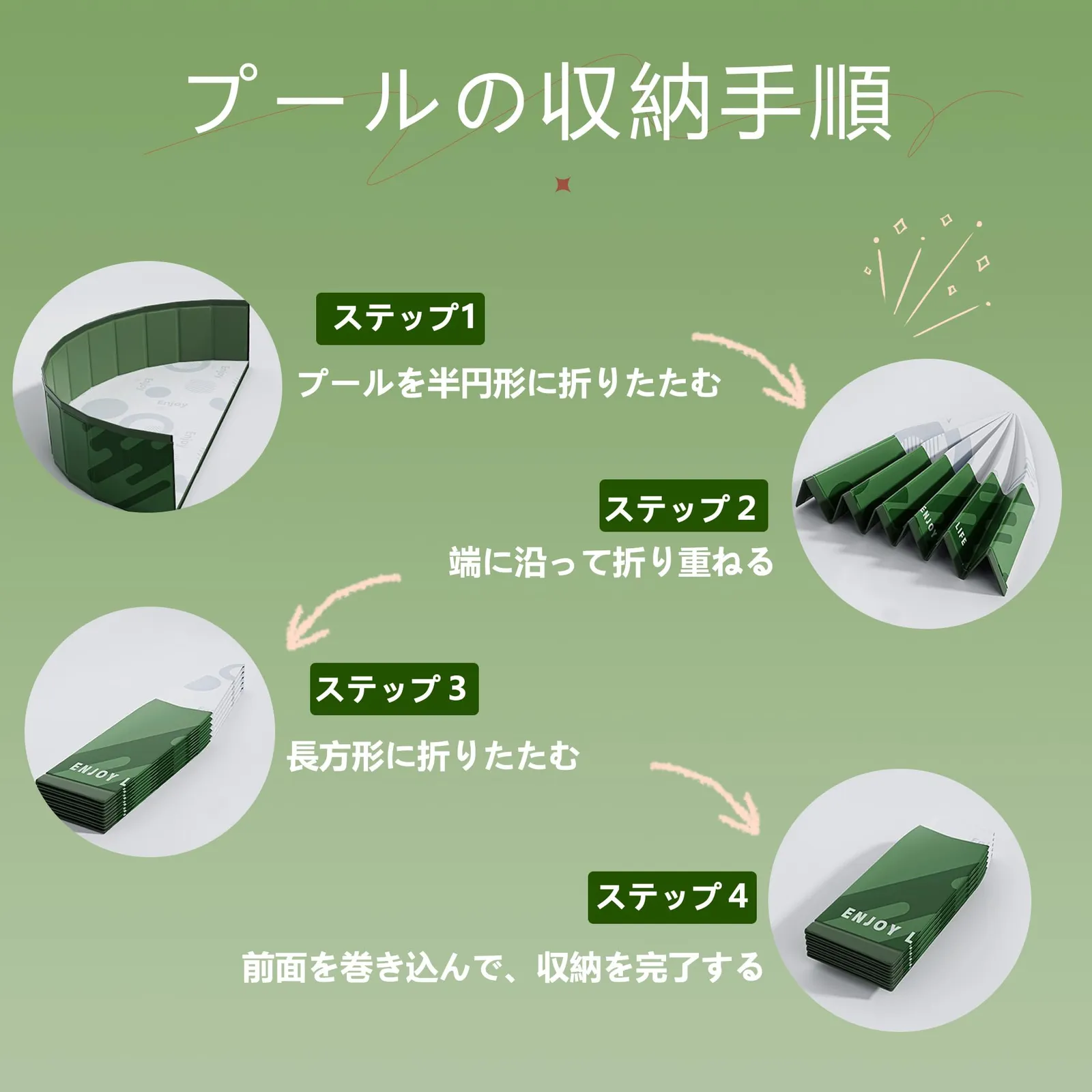 3.空気を入れないプールは簡単に開けて折りたたむことができます。使わないときもすっきり収納できて、スペースを取りません。