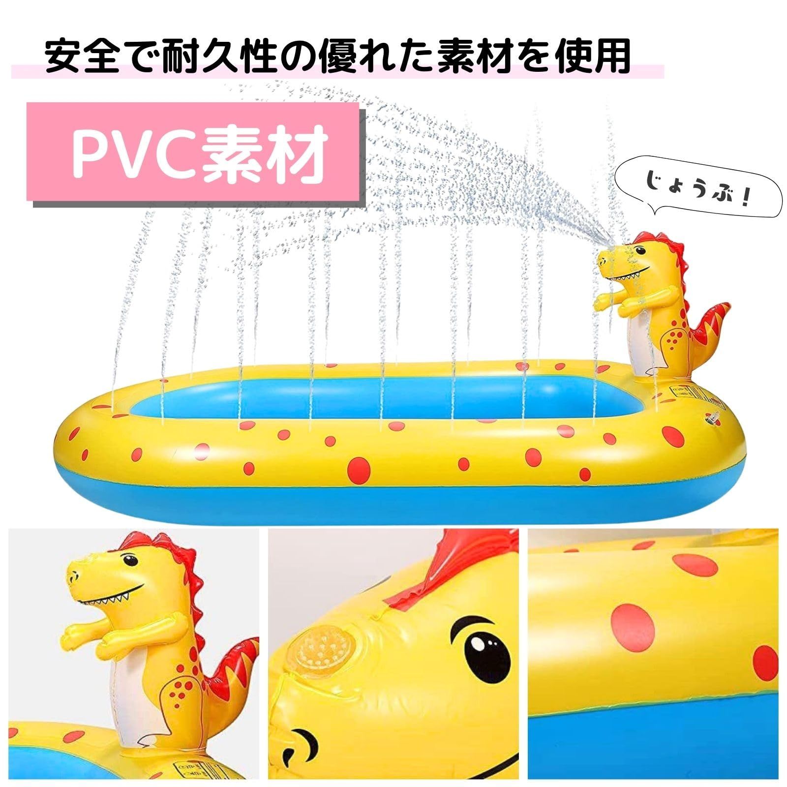 噴水プール 幼児用 ビニールプール 噴水 170cm x 105cm 噴水シャワー 子ども 幼児向け 屋外 ベビー マット 自宅 庭 小さめ 折りたたみ スプリンクラー ファミリー 水遊び キッズ レジャー ベランダ用 家庭用 恐竜 イルカ (恐竜プール)