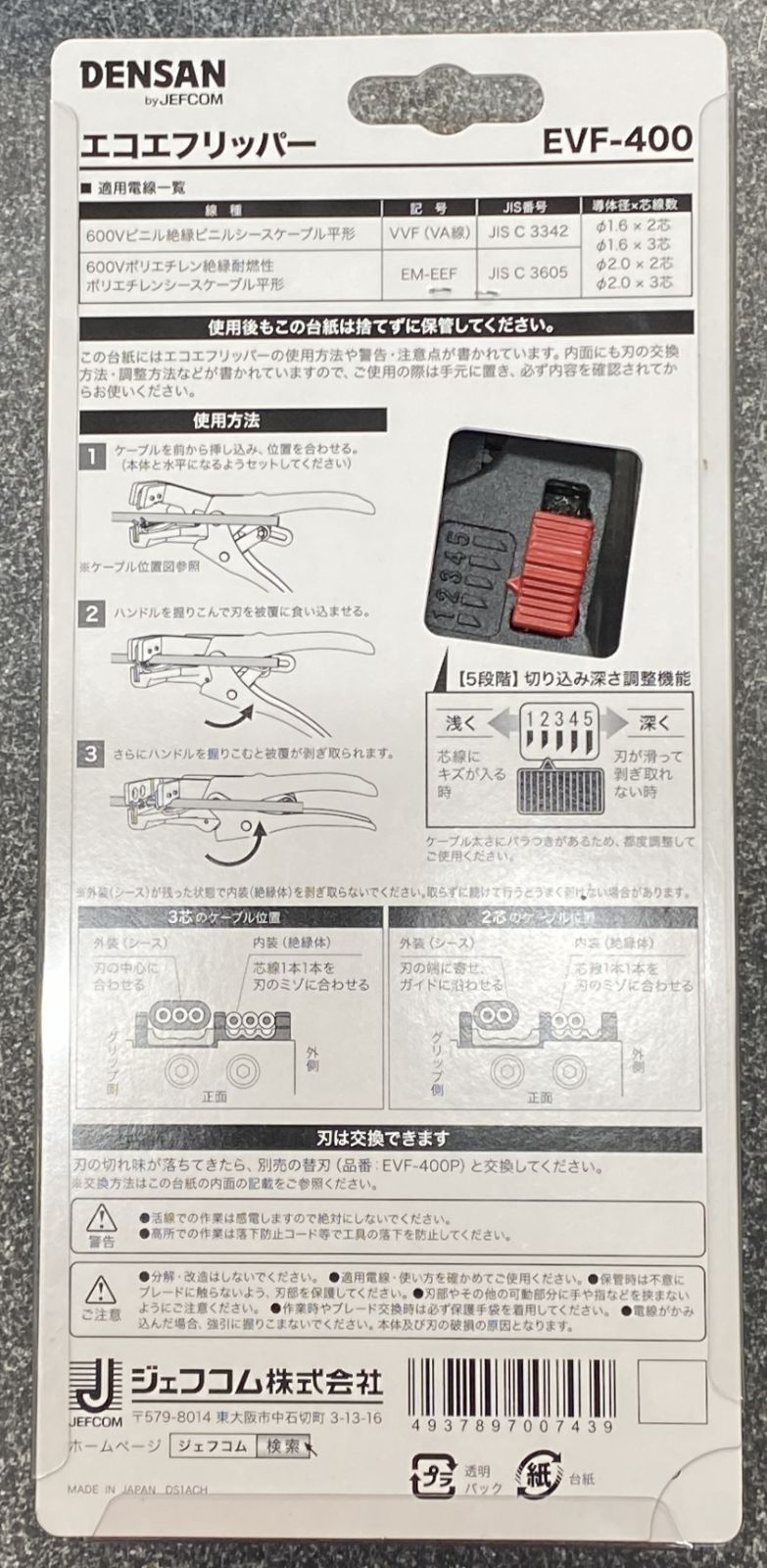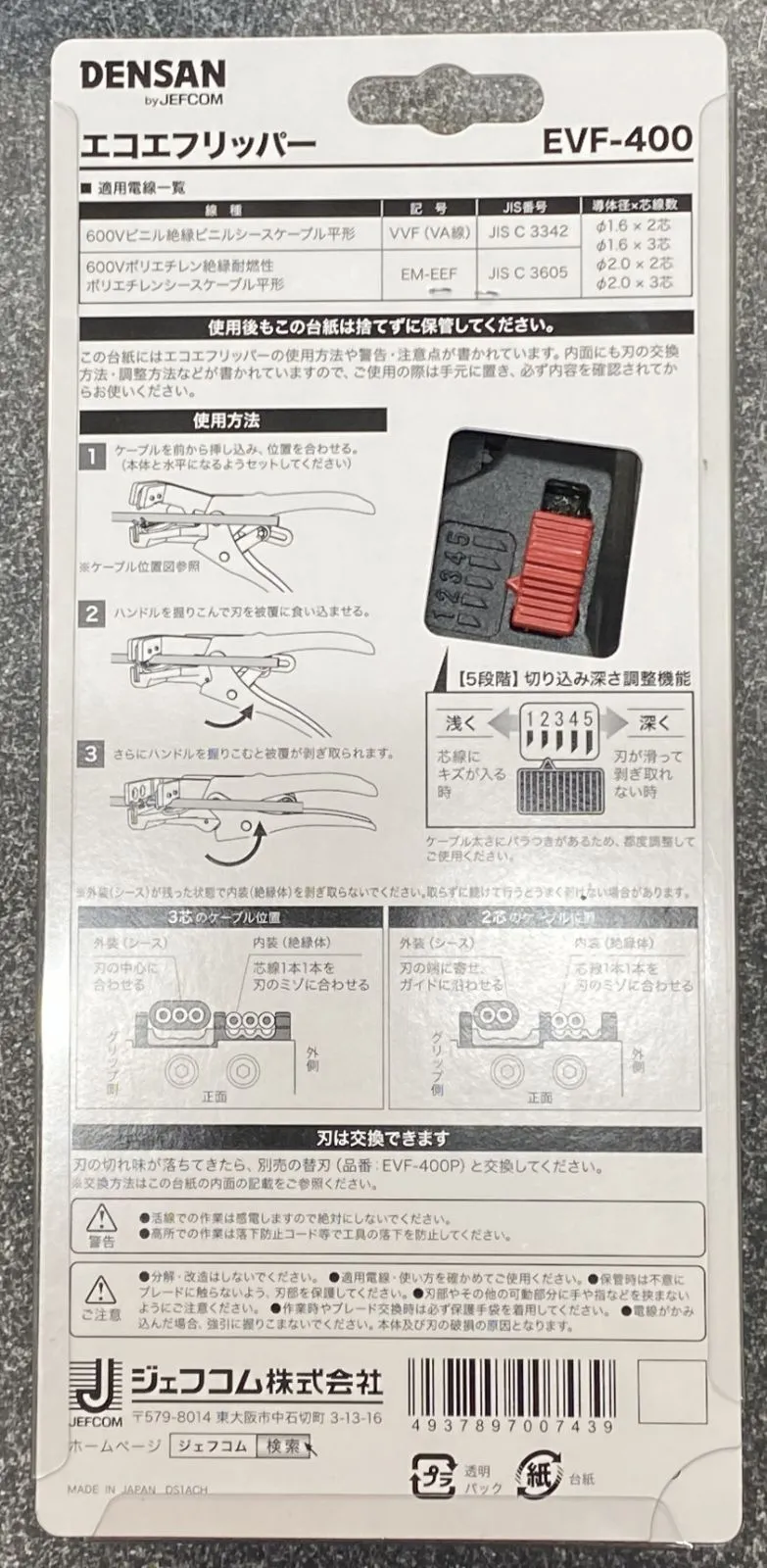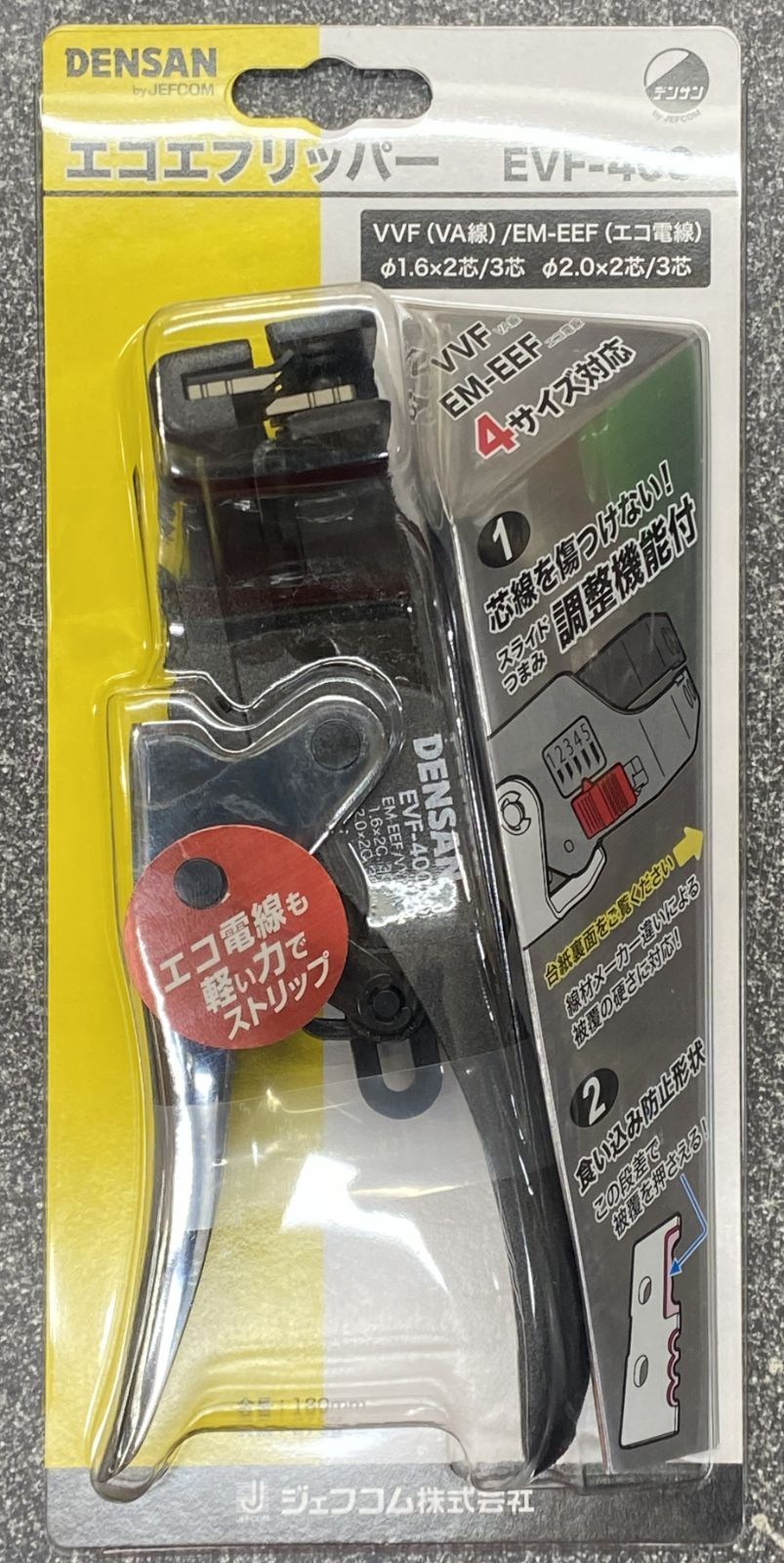 【仕様】 適用ケーブル EM-EEF(エコ電線) VVF(VA線) 2.0×3C、2.0×2C、1.6×3C、1.6×2C 全長 180mm 質量 370g