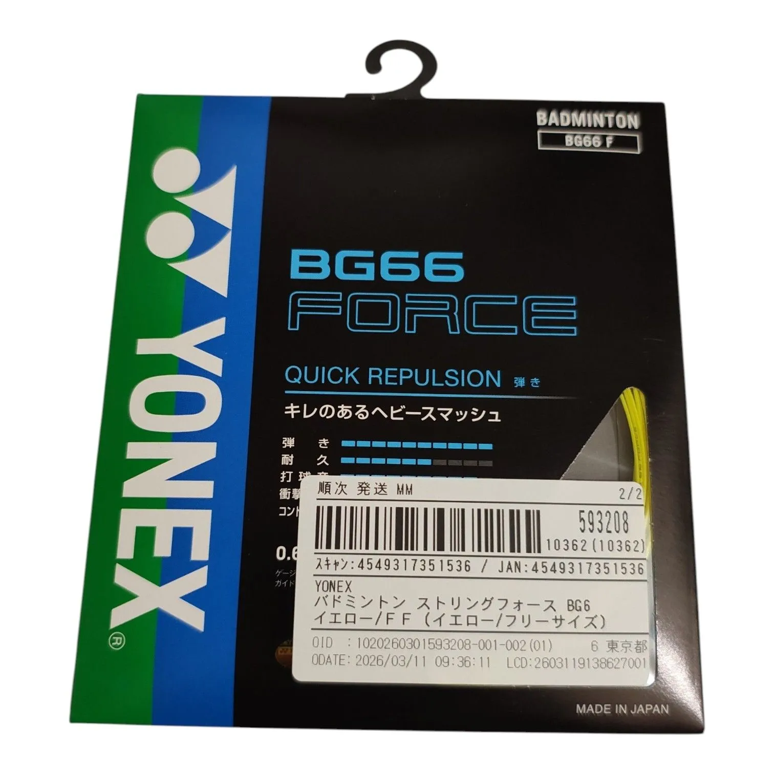 ヨネックス(YONEX) BG66 フォース 10m(BG66 FORCE) BG66F バドミントンガット 4549317351536【WJ204】