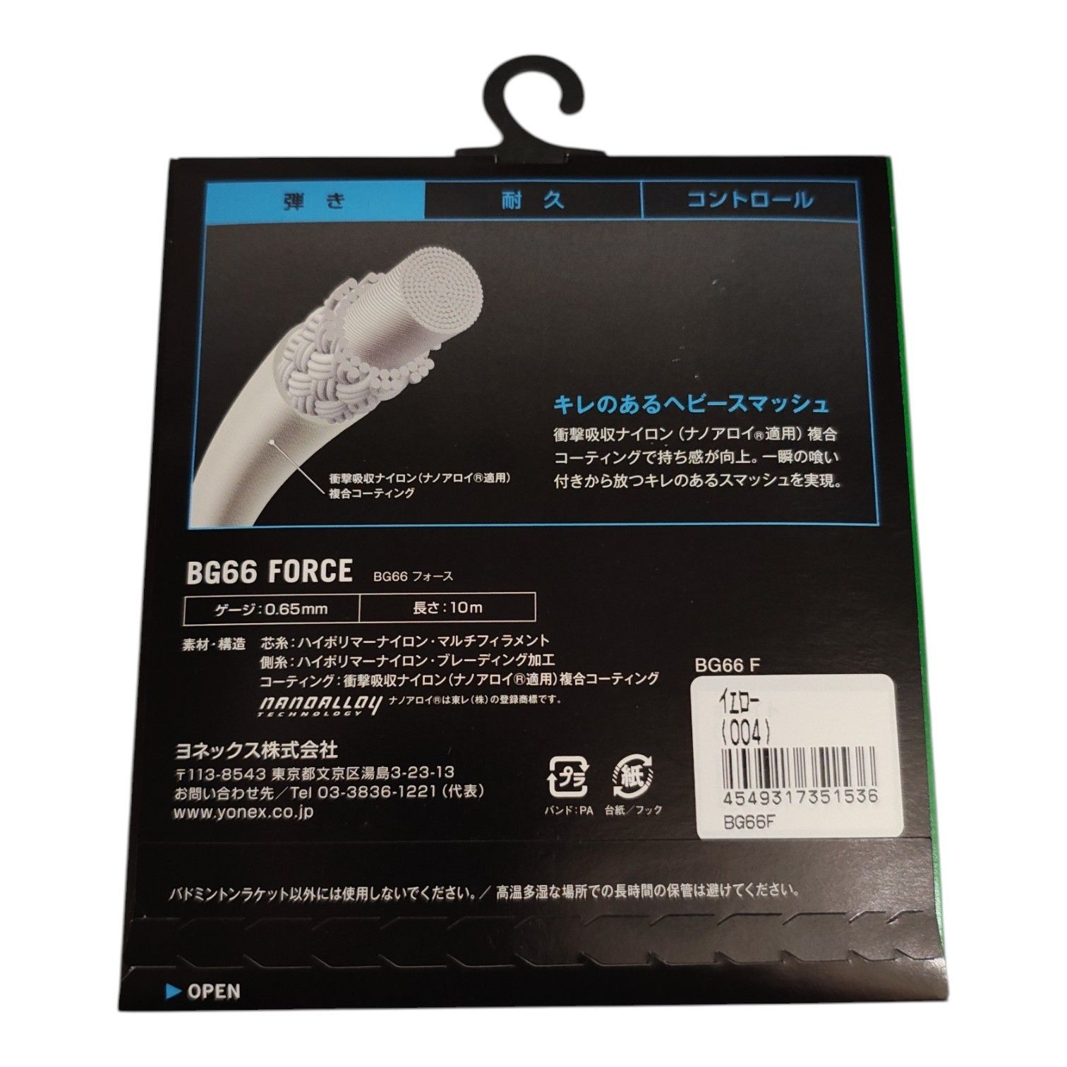 ■ 商品説明 ヨネックス(YONEX) BG66 フォース 10m(BG66 FORCE) BG66F バドミントンガット イエロー