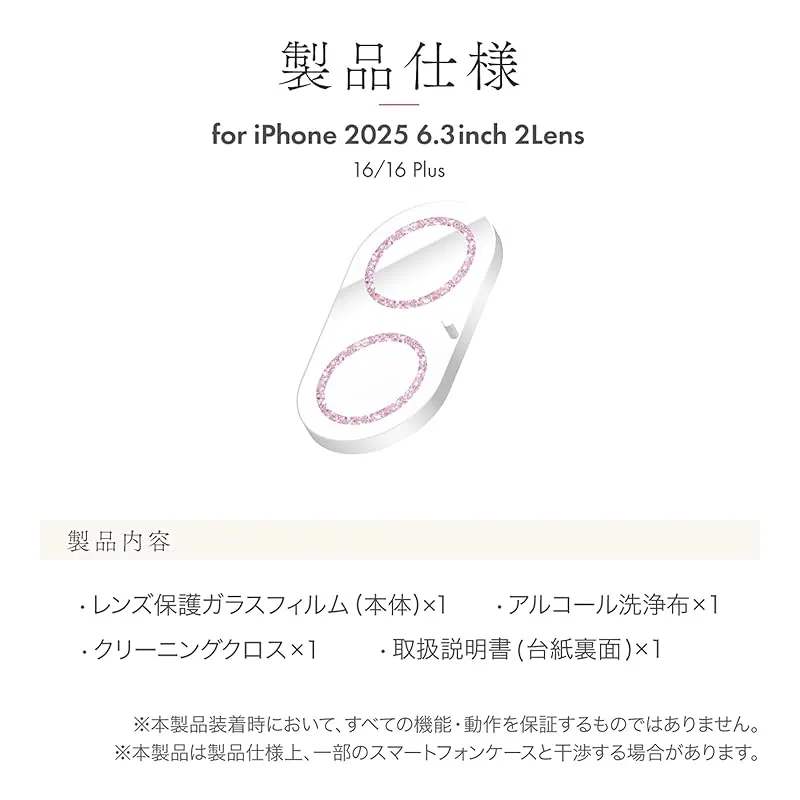 【新品】 LEPLUS レンズ保護ガラスフィルム「SPARKLE LENS GLASS」 iPhone 17/16/16 Plus 対応 互換性 全面保護 ピンク 耐傷 レンズを守る おしゃれ LN-MIM25FGLENSLPK 製造元:MSソリューションズ 商品番号:LN-MIM25FGLENSLPK 色:クリア