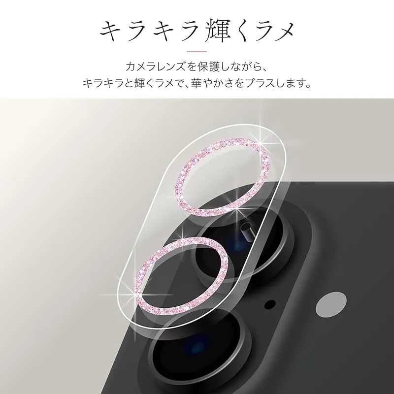 【新品】 LEPLUS レンズ保護ガラスフィルム「SPARKLE LENS GLASS」 iPhone 17/16/16 Plus 対応 互換性 全面保護 ピンク 耐傷 レンズを守る おしゃれ LN-MIM25FGLENSLPK 1