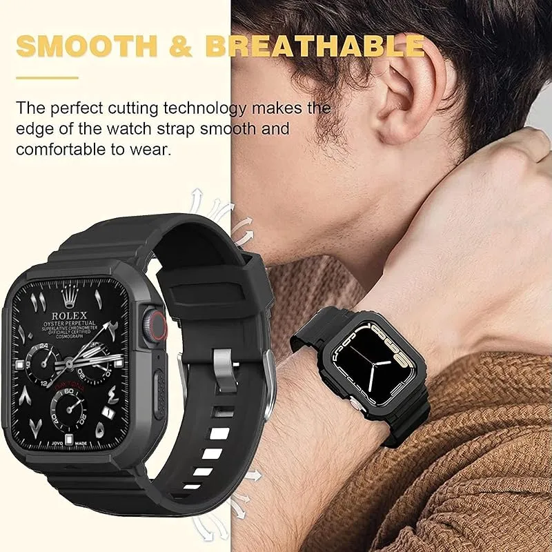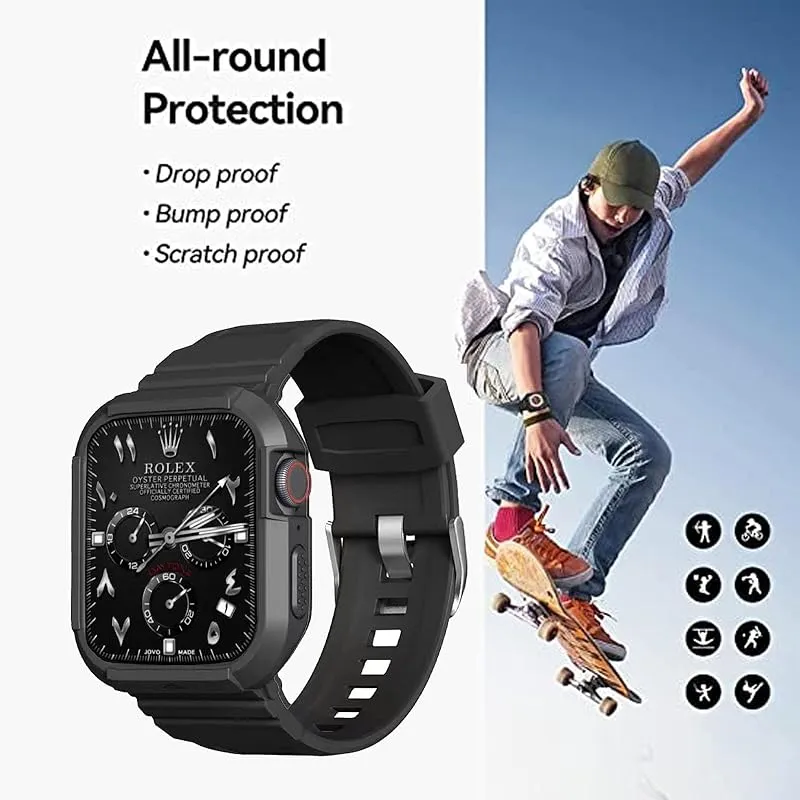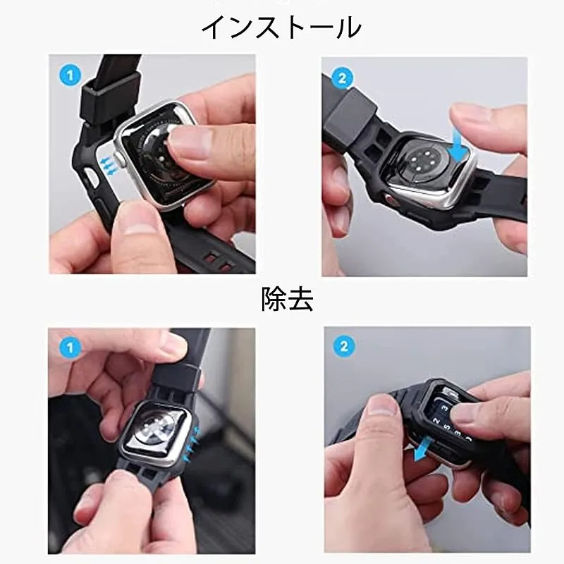 【多重保護】一体化したデザインのバンドは性質を持った柔軟なプレミアムTPU素材を採用し、時計を全面的に保護できます。隆起したエッジデザインにより、高い耐衝撃性があり、アップルウォッチケースを引っかき傷や衝撃から完全に保護します