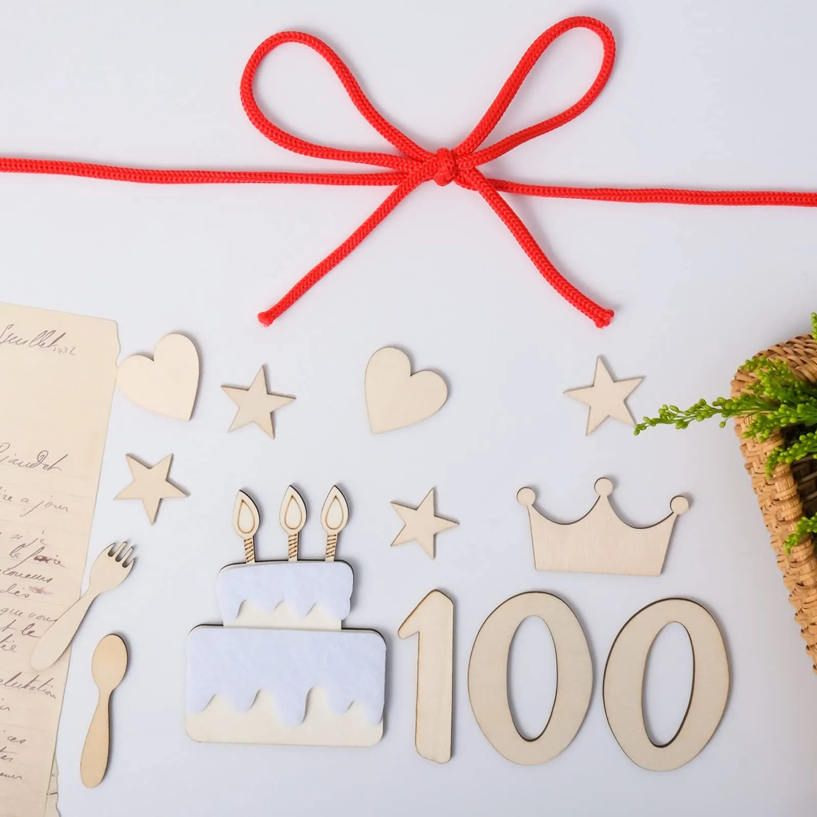 【豊富な要素】:「祝、百、日」各1枚、「魚」*1枚、「梅結び」*1枚、「エビ」*1枚、「寿」*1枚、「ケーキ」*1枚、「1」*1枚、「0」*2枚、「フォーク」*1枚、「スプーン」*1枚、「クラウン」*1枚、「葉」*2枚、「花」*2枚、「星」*4枚、「ハート」*2枚、合計 2 4 枚。厚さ約3mm。また、縁起を象徴する長さ2メートルの赤い縄も付いています。