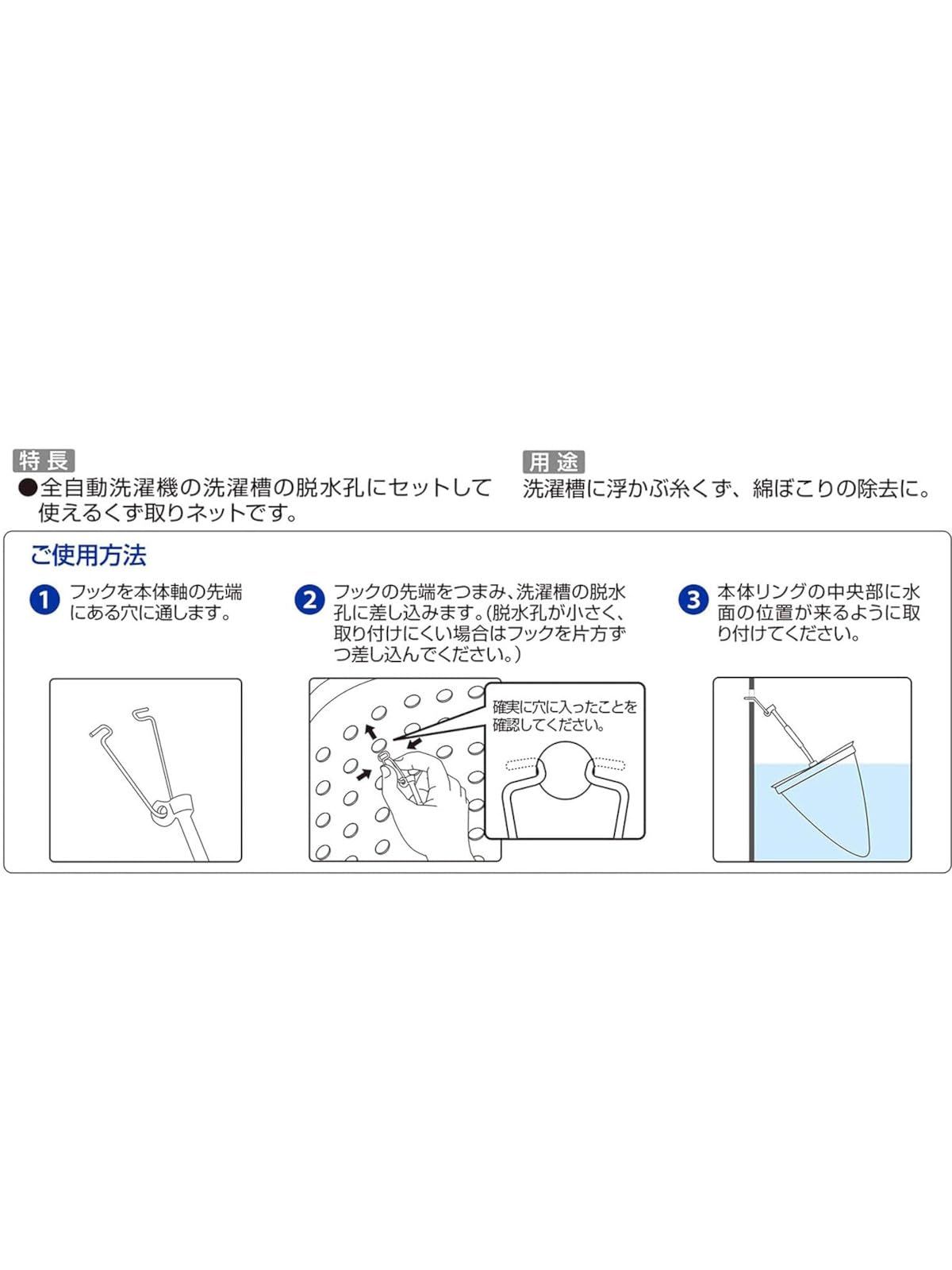 【注意事項】 ・本来の用と以外には使用しないでください。 ・対応する脱水孔のサイズは、直径4~8mmのものです。(長さ8mm以上の楕円穴は不可です。) ・脱水孔以外にフックを取り付けないでください。 ・脱水孔が直径8mm以上のものは取れやすくなり、直径4mm以下の物は外せなくなる場合があります。 ・使用前に製品各部を点検し、異常が認められる場合は使用しないでください。 ・洗濯物の量が多いと本体に絡み、破損する恐れがあるので洗濯機の洗濯容量を必ず守ってください。 ・乾燥機には使用しないでください。全自動洗濯機の場合は脱水が終わるまで使用できます。 ・脱水口の直径が5~8mmのものに、フックを確実につけてご使用ください。 ・使用後はネットにたまったくずを取り除いてください。 ・火のそばや高温になる場所に置かないでください。 ・廃棄時は各自治体の定める方法に従って処理してください。 ・複雑な水流を作る洗濯機や反復式、弱水流モード等では糸くずが取れないことがあります。 ・また水位の低い状態で使用した場合にも糸くずが取れない場合があります。 サイズ:約直径10cm×19cm 生産国:中国 ホワイト 材質:ネット…ポリエステル リング…ポリスチレン フック…ステンレス 最後まで確認ありがとうございました。 注意点 ・配送会社の指定はできかねます。 ・営業所止めは受けておりません ・ご注文後のお問い合わせはメッセージよりお願い申し上げます。