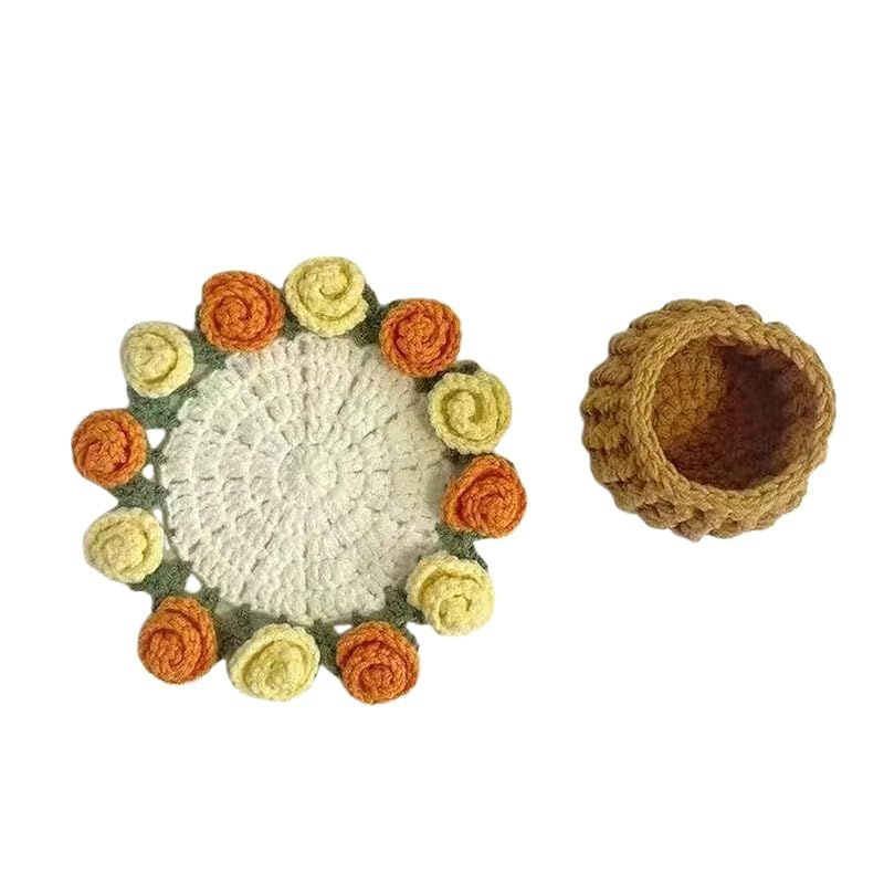 【新品】 lulubelle かぎ針編みキット 花のコースター用 あみものキット手芸 編み物 編みセット クリスマス 誕生日 記念日 贈り物 (オレンジ) 1