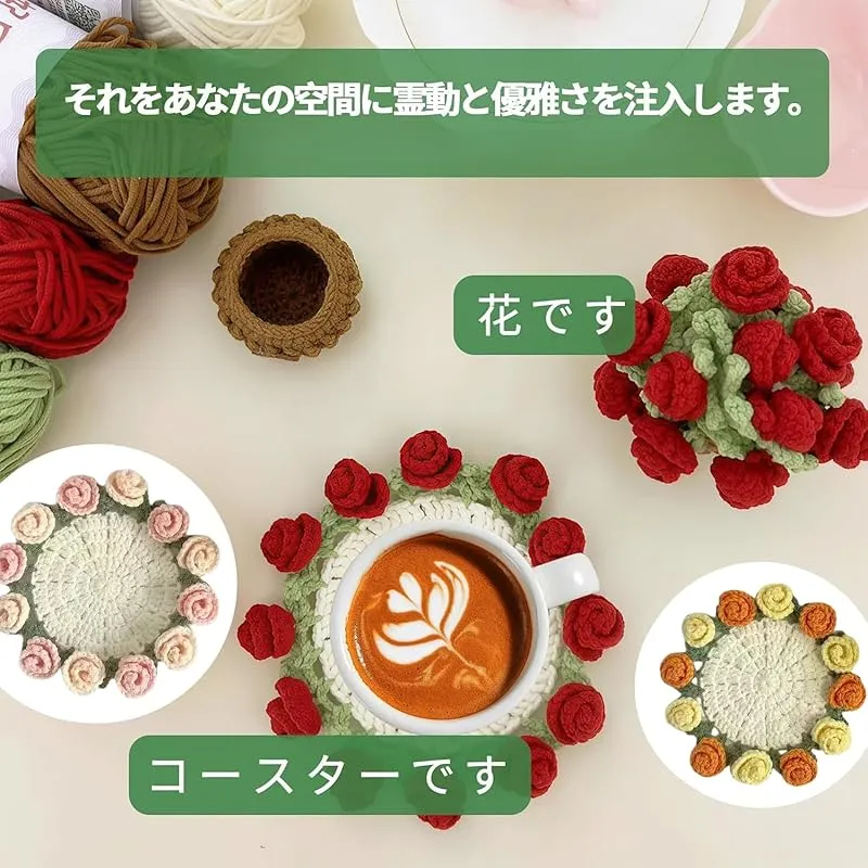 【商品説明】 lulubelle かぎ針編みキット 花のコースター用 あみものキット手芸 編み物 編みセット クリスマス 誕生日 記念日 贈り物