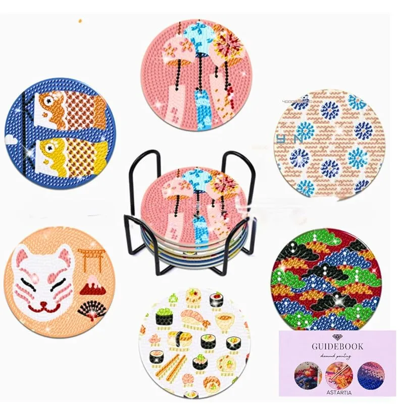 【新品】 Astartia ダイヤモンドアート コースター キット DIY ダイヤモンドビーズ 5Dダイヤモンド塗装キット コースター ダイヤモンドペインティング 初心者 大人 子供用 アートクラフト用品 6枚入 ホルダー付き かわいい (和柄 和風)