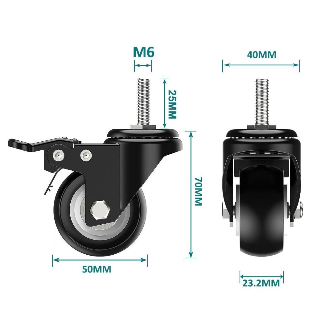 Zalslei ネジ式 自在キャスター M6 ブレーキ付き 車輪径50mm