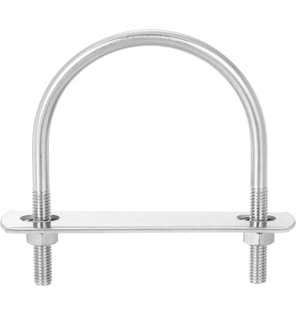 【手軽に使用】Uボルトを使用して固定する対象物を固定し、プレートとワッシャーを取り付け、ナットで締め付けます。ボルトを所定の位置にしっかりと保持します。