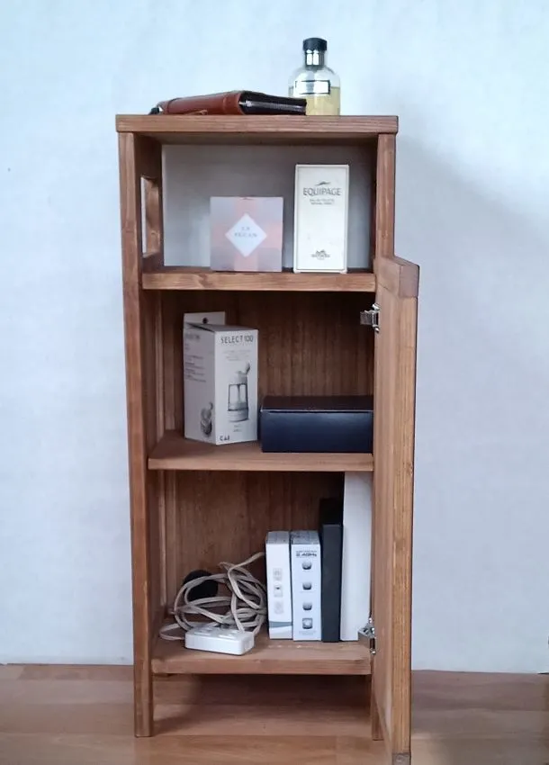 ハンドメイド!ブラウンカラーのモデム、ルーターが収納できる、ナイトテーブル、フラワースタンド、電話台、サイドテーブル