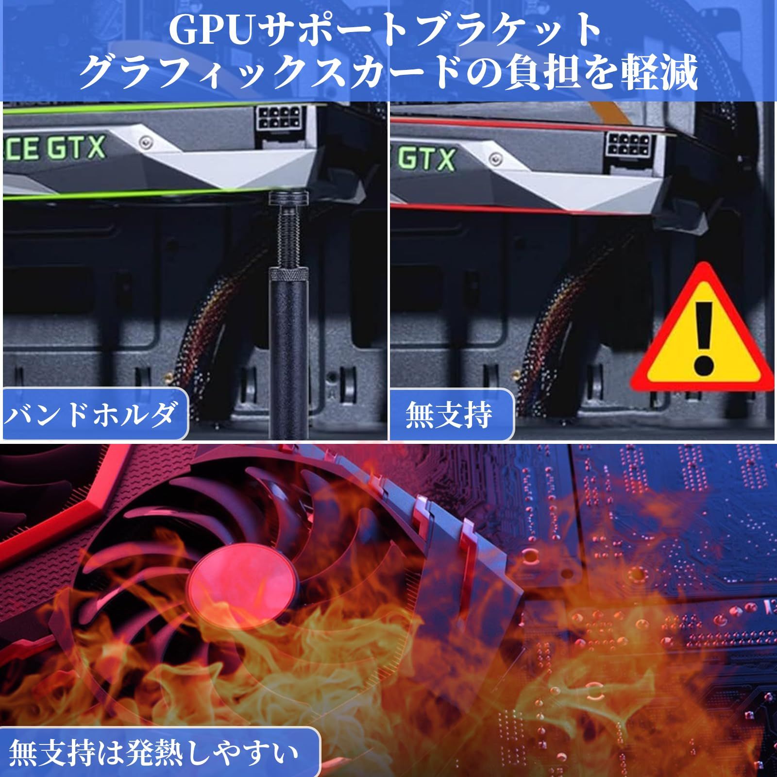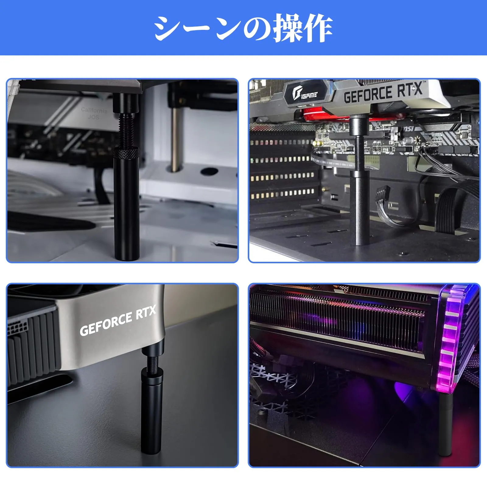 【実用性の両立】 GPUサポートはクラシックな黒の外観デザインを採用し、シンプルな雰囲気で、現代のシャーシとコンピュータシステムに完璧に溶け込むことができ、全体の組み立ての美しさを損なうことはありません。実用的なサポート機能を備えると同時に、グラフィックスカードの「ディスプレイラック」としても機能し、高性能グラフィックスカードの質感を際立たせ、実用性と観賞性を両立させることができる。