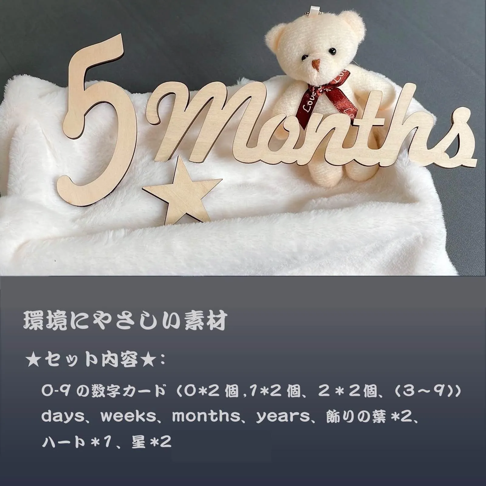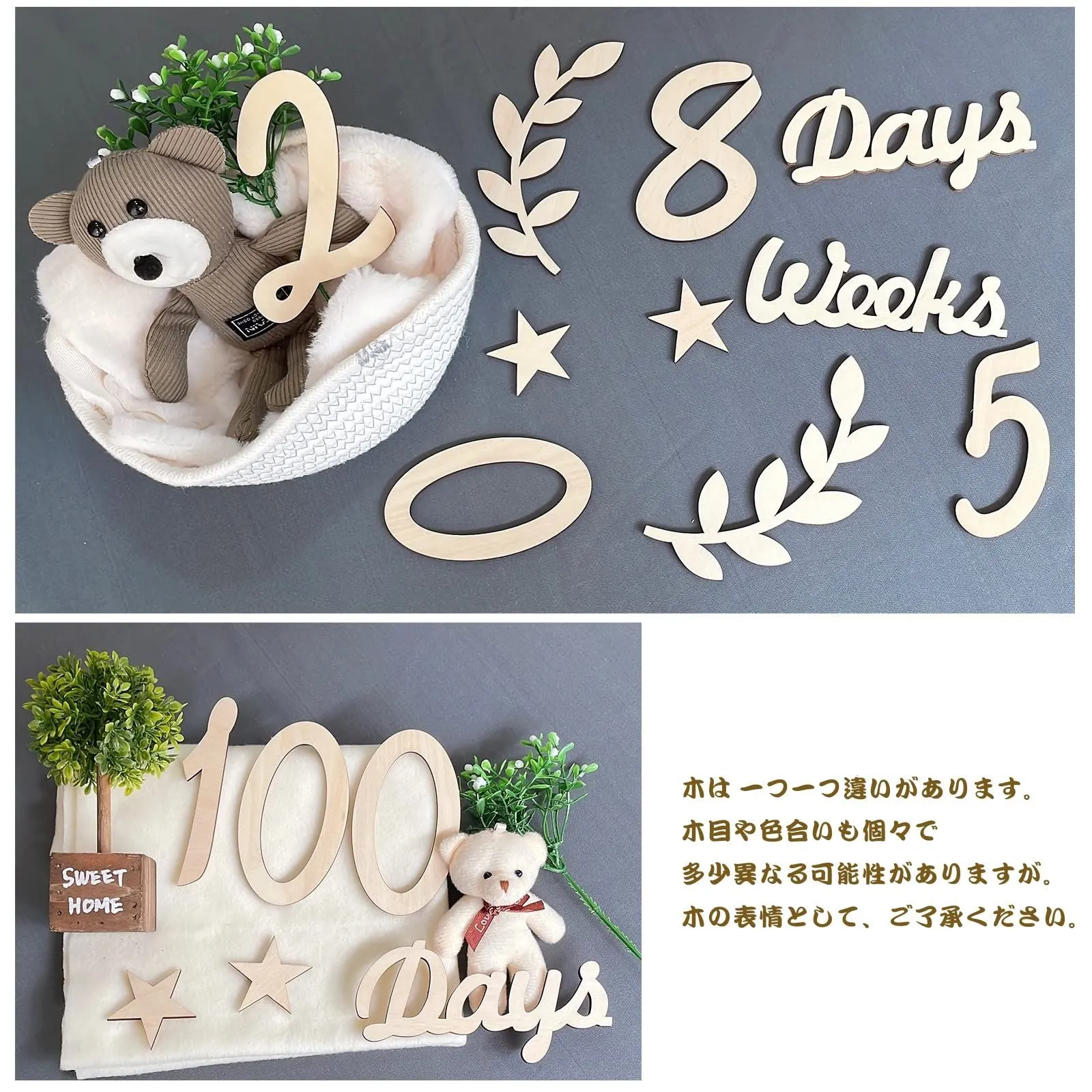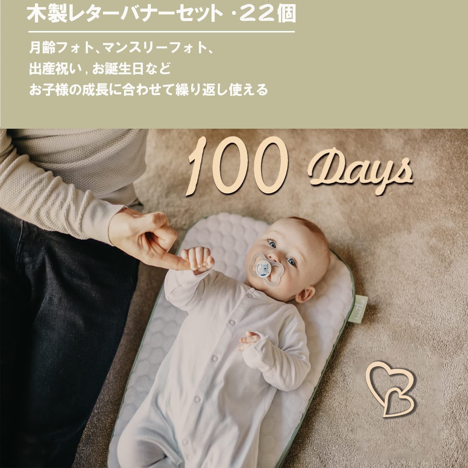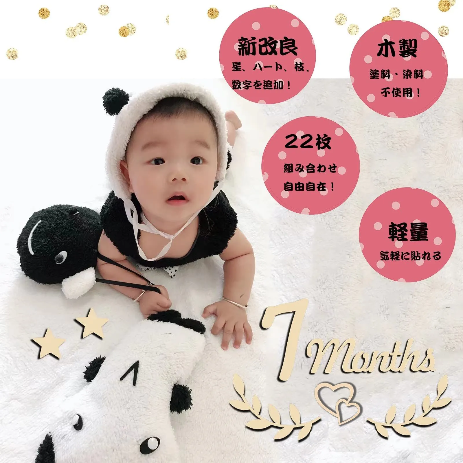 赤ちゃん 新生児 ベビー用品 月齢フォトグッズ 寝相アート 飾り付け 撮影用 出産祝い 成長記録 (22枚 記念日フォト ニューボーンフォト マンスリーカード 星) レターバナー 天然木製 月齢フォト