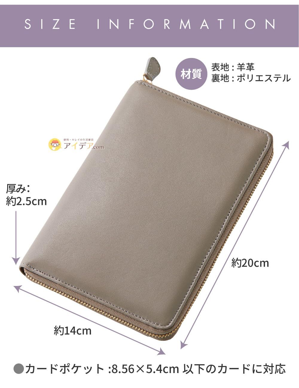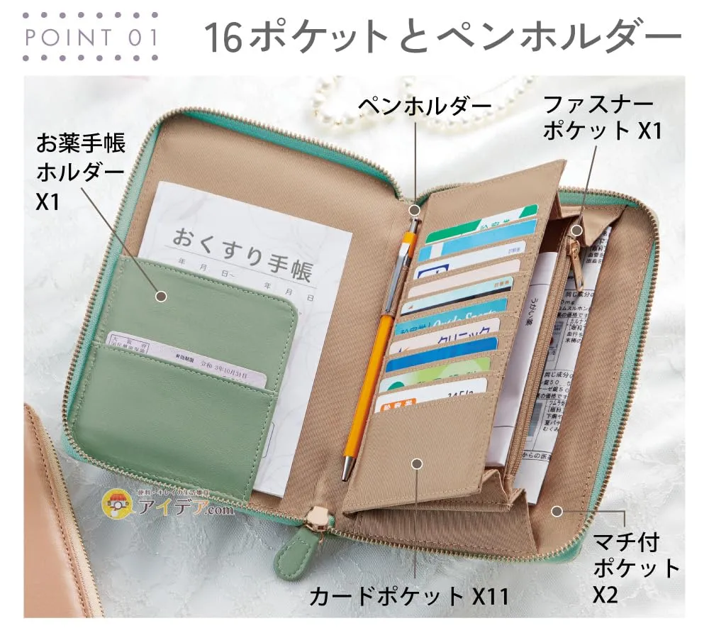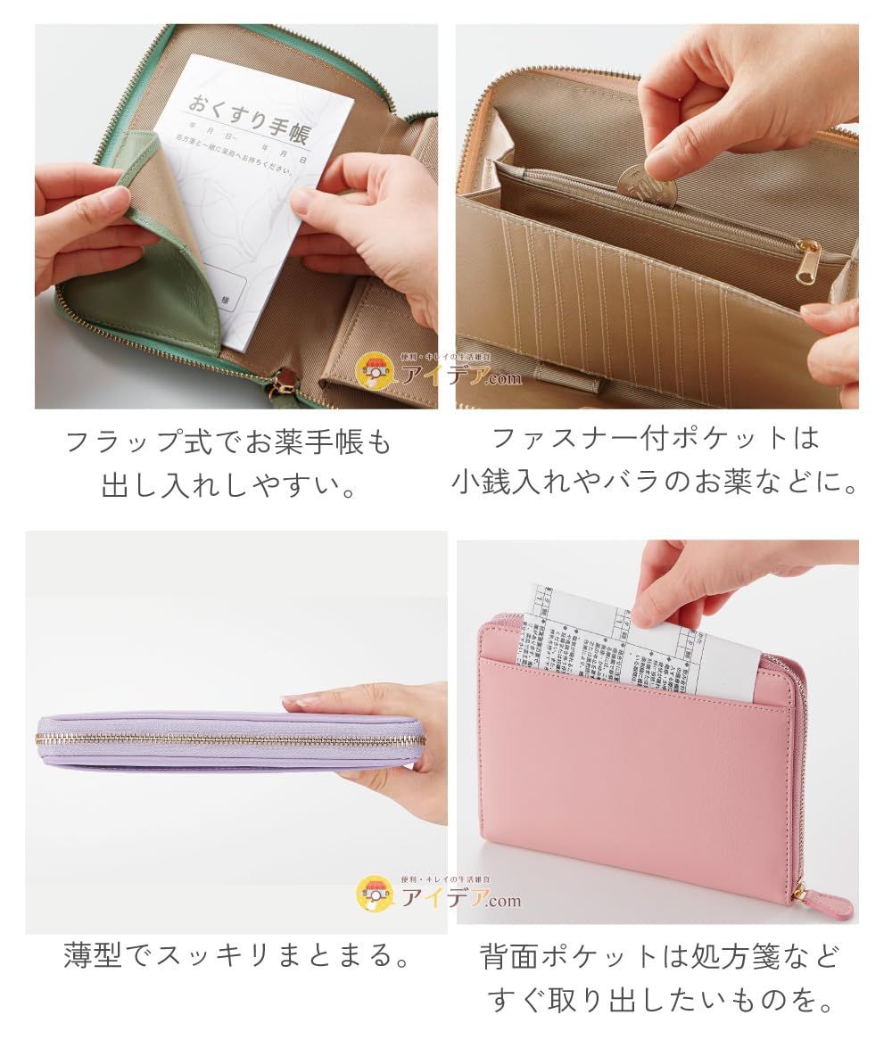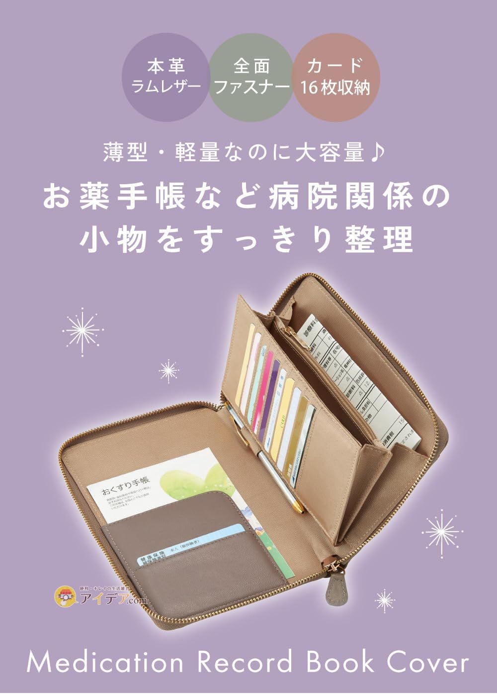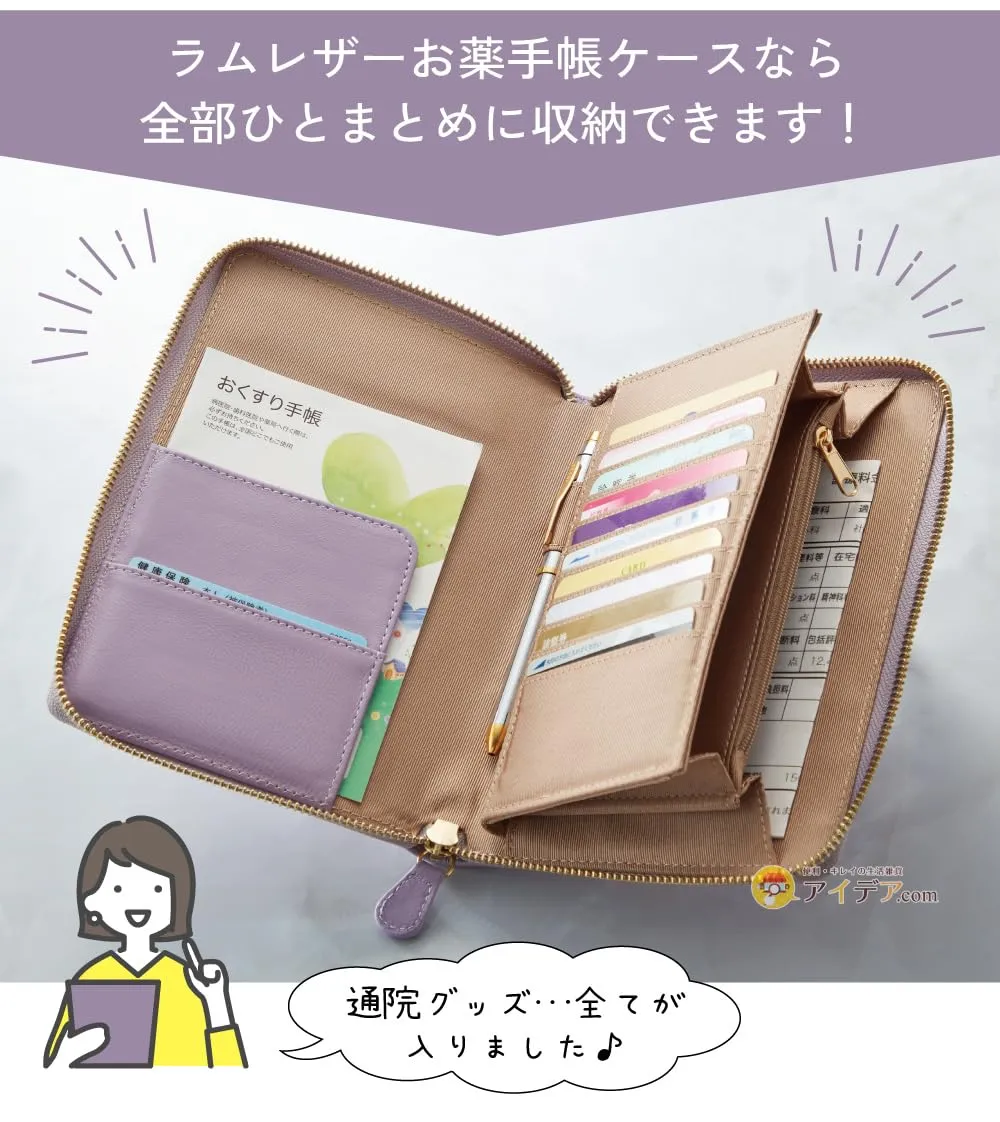 新品 [コジット] 多機能ポケット付き 薄型なのに大容量 お薬・カード・処方箋などまとめて持ち運びできる ラムレザーお薬手帳ケース グレージュ