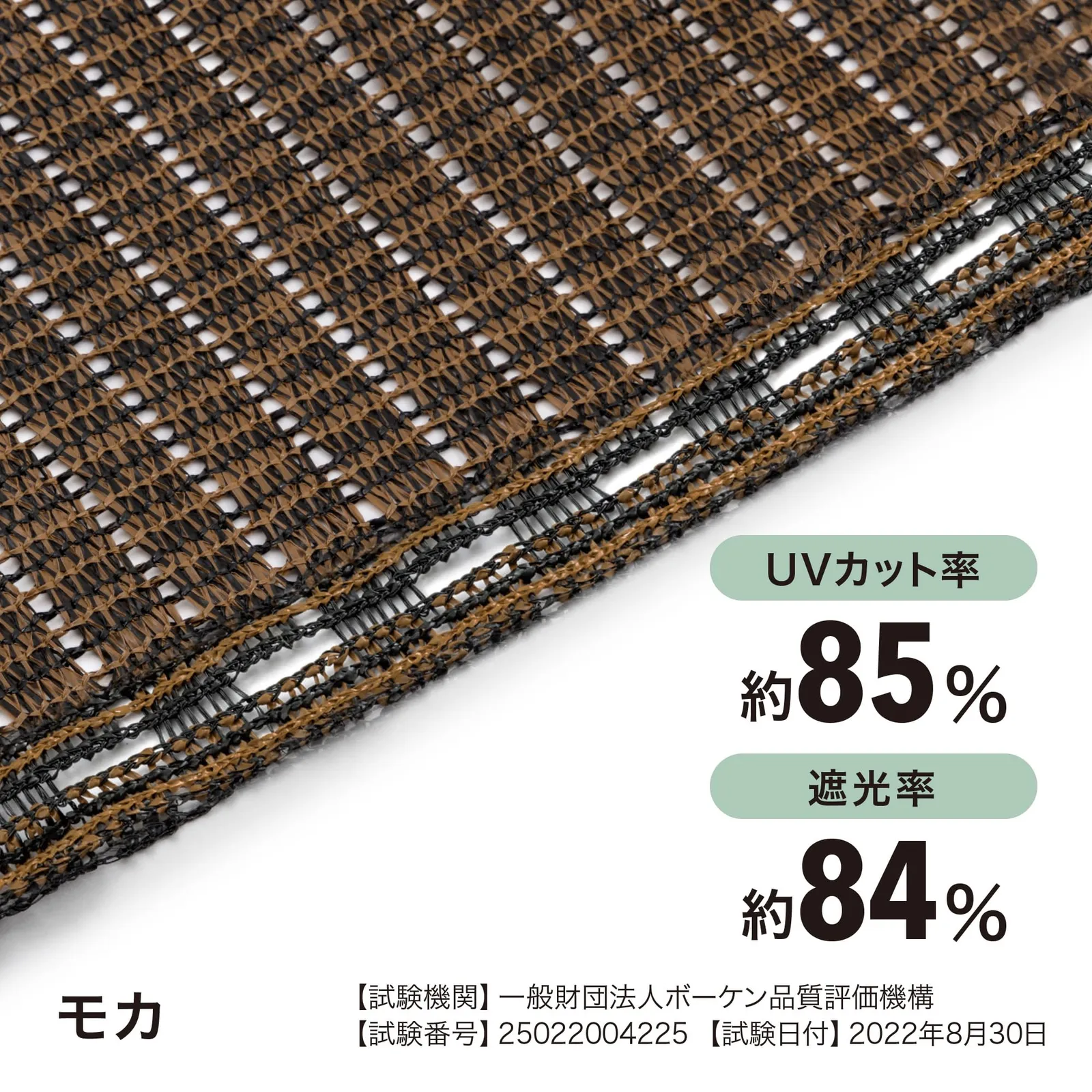 【風を通す「飛ばし編み」加工と軽量設計】 ・ 従来比1.4倍の通気性: 独自の「飛ばし編み」加工を施すことで、熱気をスムーズに排出します。 風が抜けるためシェードがバタつきにくく、狭い場所でも空気の流れを妨げません。 ・ 驚きの軽さと扱いやすさ: 重量わずか約0.35kg。片手で軽々と扱えるため、高い位置にある小窓への取り付けも非常に簡単です。 ・ 高い紫外線カット効果: UVカット率約85%、遮光率約84%を確保。木陰のような涼しさを作り出し、室内の冷房効率をアップさせます。