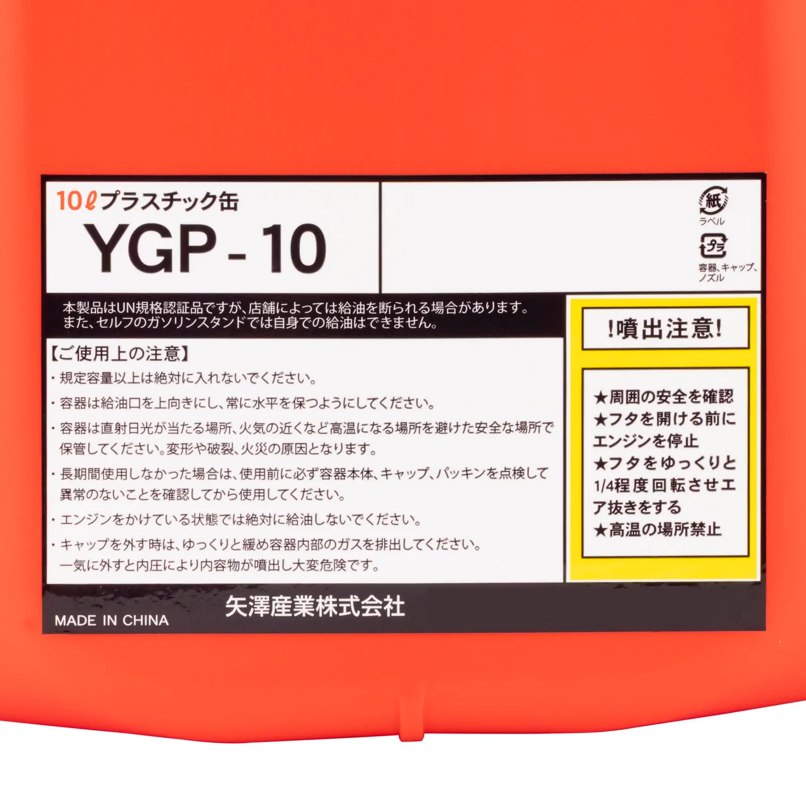 消防法の改正によりガソリン携行缶のプラスチック容器が認められ、消防法適合の矢澤産業プラスチック缶の扱いを始めました。