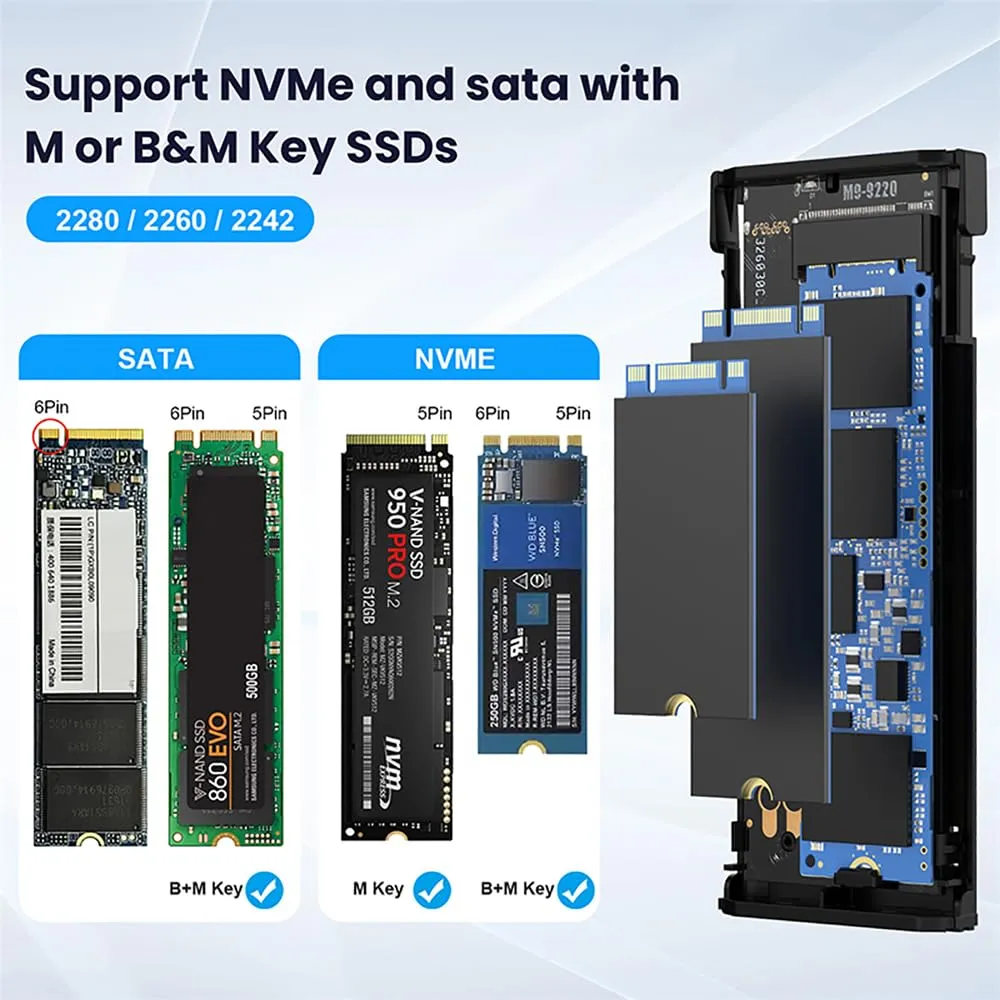新品 NFHK Type-C USB3.2 USB4 20Gbps to M-key M.2 NGFF NVME SATA SSD PCBA Enclosure 2280/2242/2260mm RTL9220