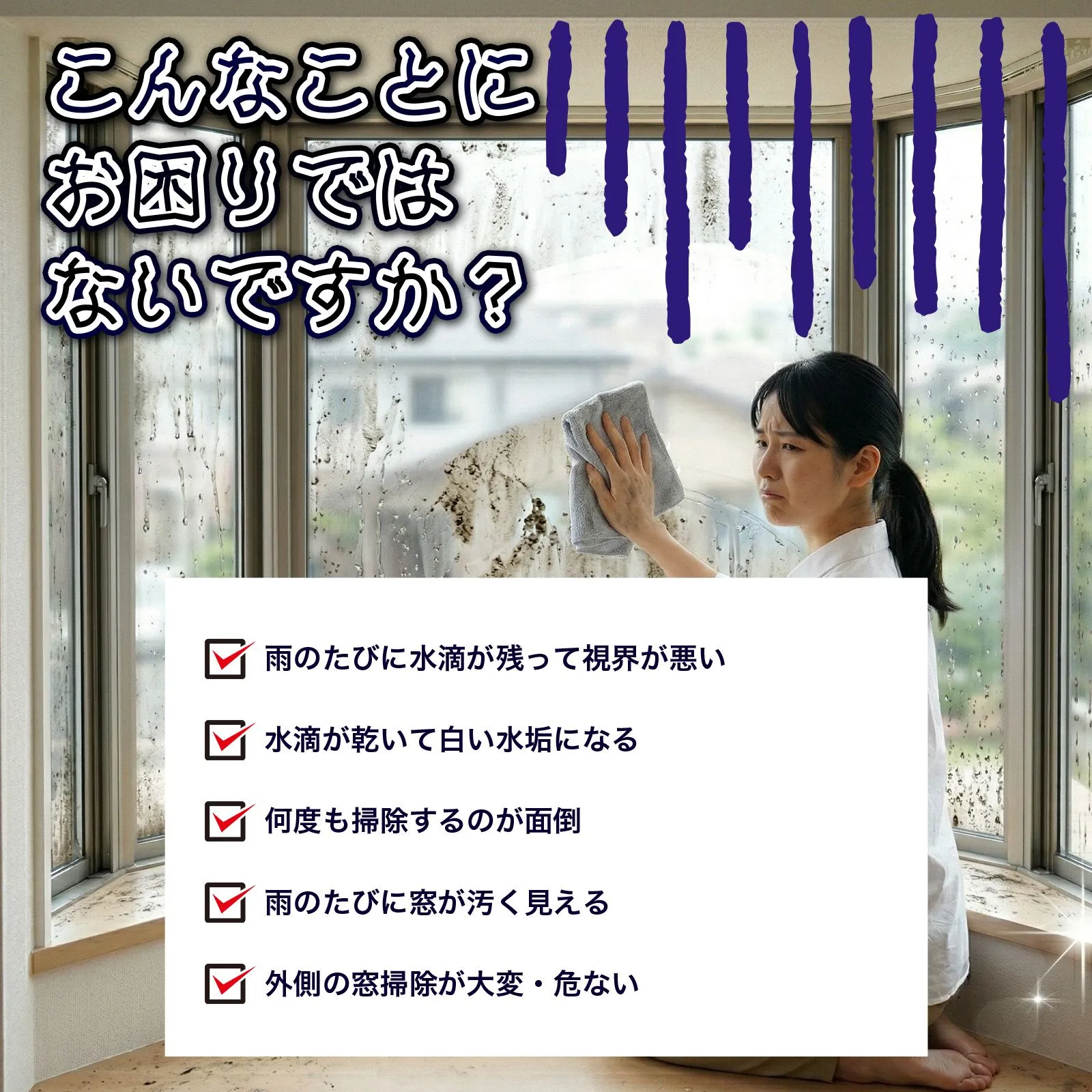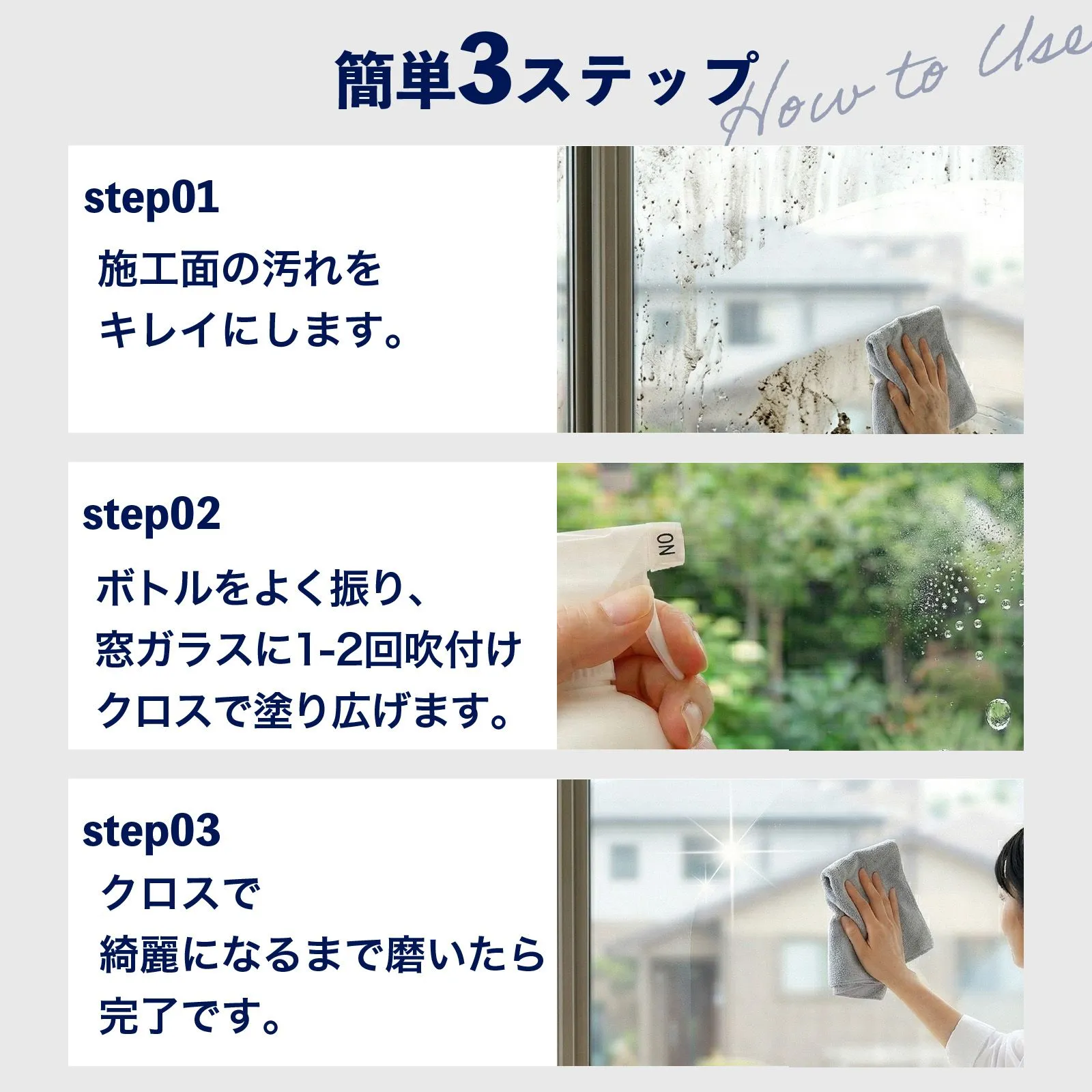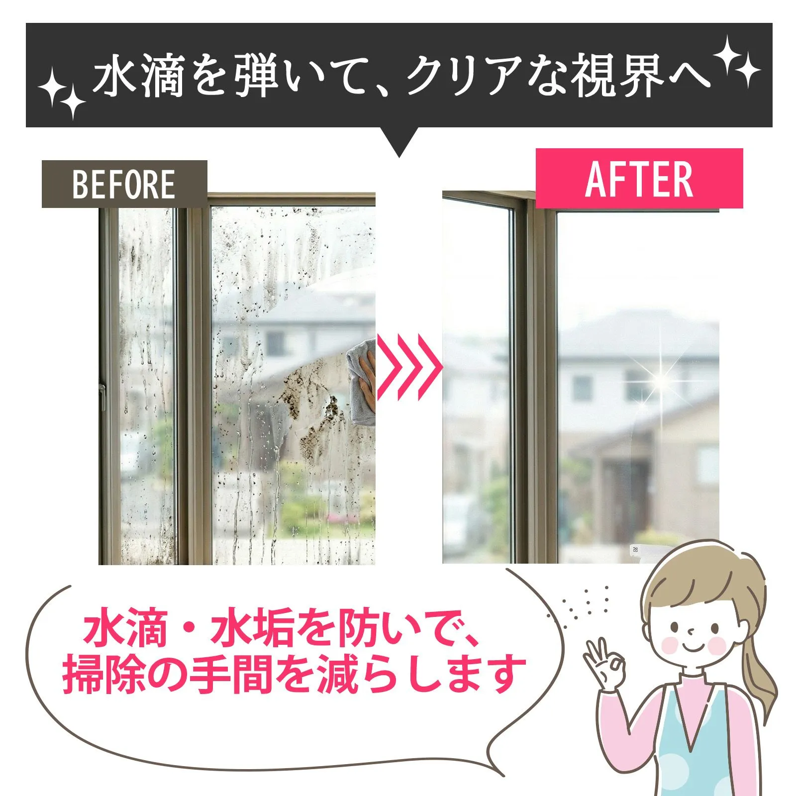 窓ガラス撥水コーティングスプレー★超撥水で水垢防止&防汚対策♪サッシ掃除簡単 花粉黄砂対策◎日本製DIY簡単施工 外窓内窓対応長持ち清潔キープ