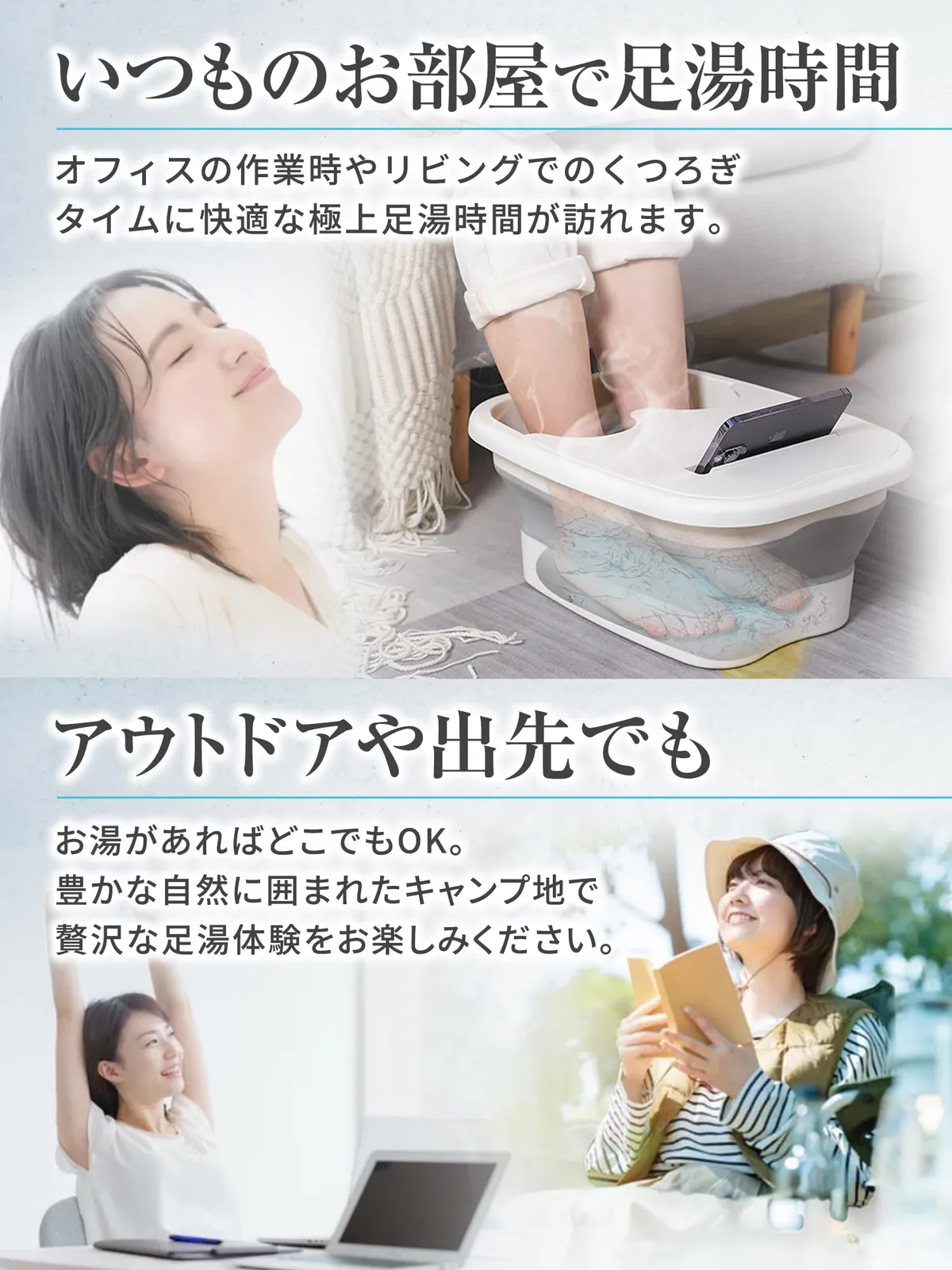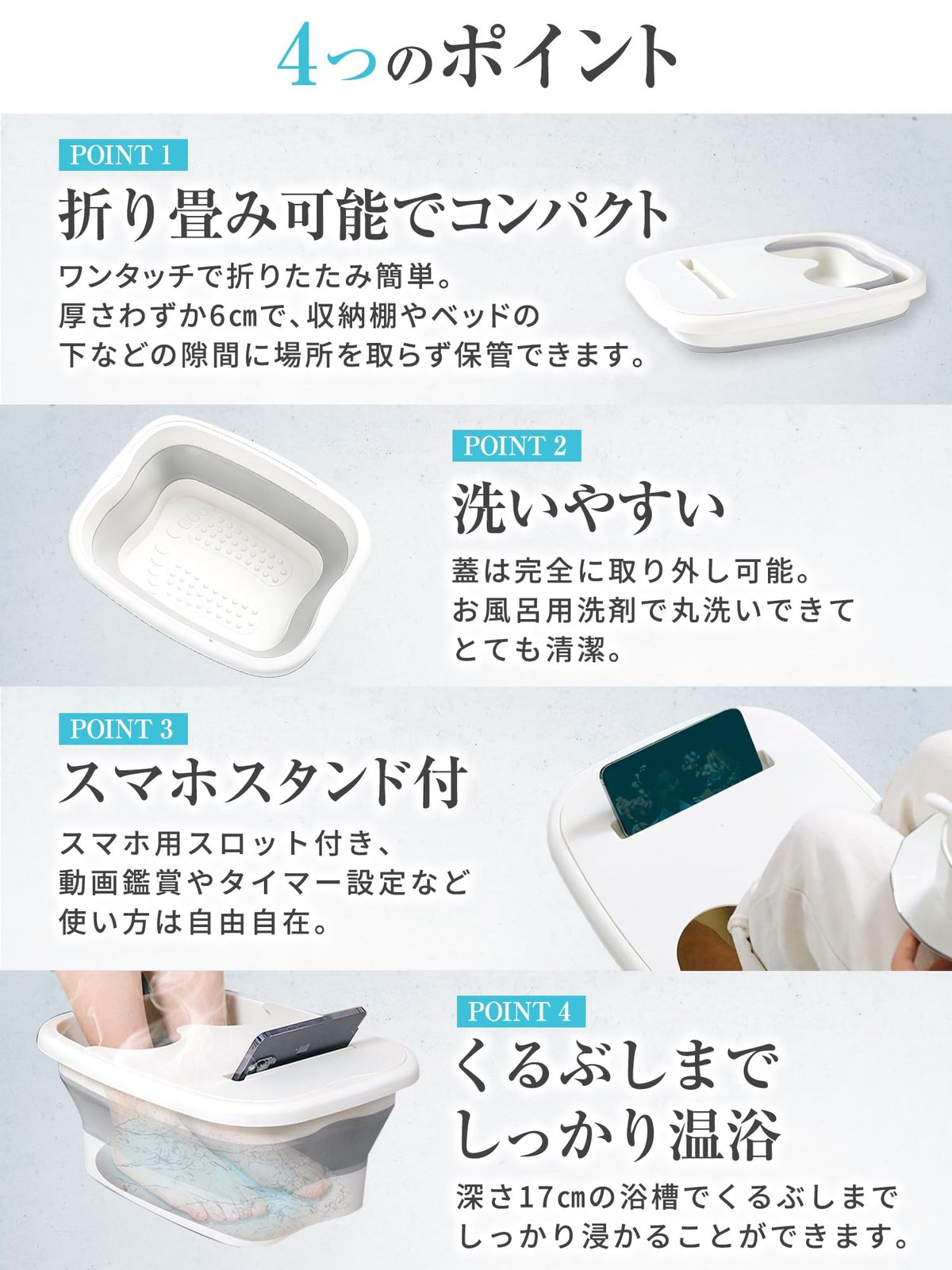 Asdays 足湯 大容量 折りたたみ 蓋付き フットバス 泡脚桶 足湯 持ち運び便利 折りたたみバケツ (ホワイト)